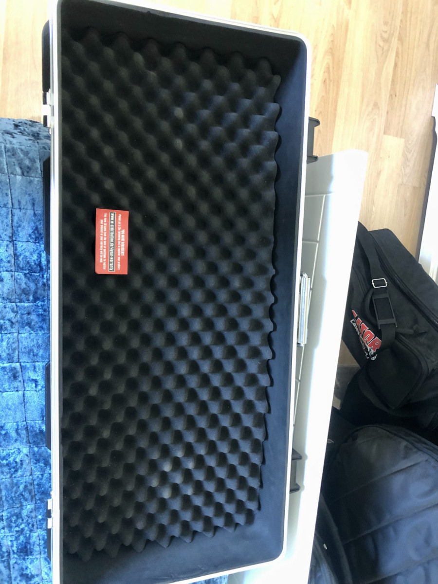 Regalo 2 Rockboard quick mount para elevar 2 pedales mini. Lleva llave para que no te la abran nunca y unas cintas de Velcro para que no se muevan los pedales dentro de la maleta. La Pedalera,maleta, fuente, cables Daisy extras, Rockboard mod y la luz me costaron más de 600 € en 2022. Tengo la facturas de Thomann