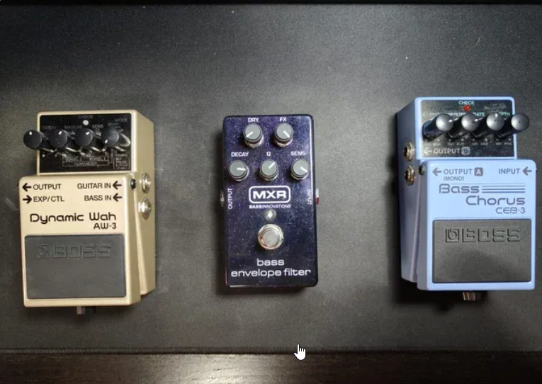 - Incluyen un MXR Bass Envelope Filter, un Boss Bass Chorus CEB-3 y un Boss Dynamic Wah AU-3.
