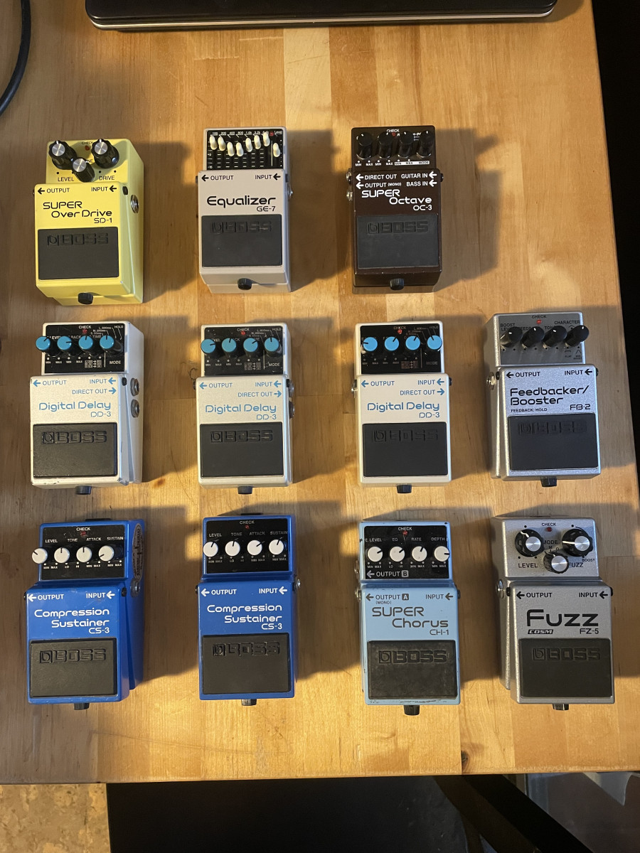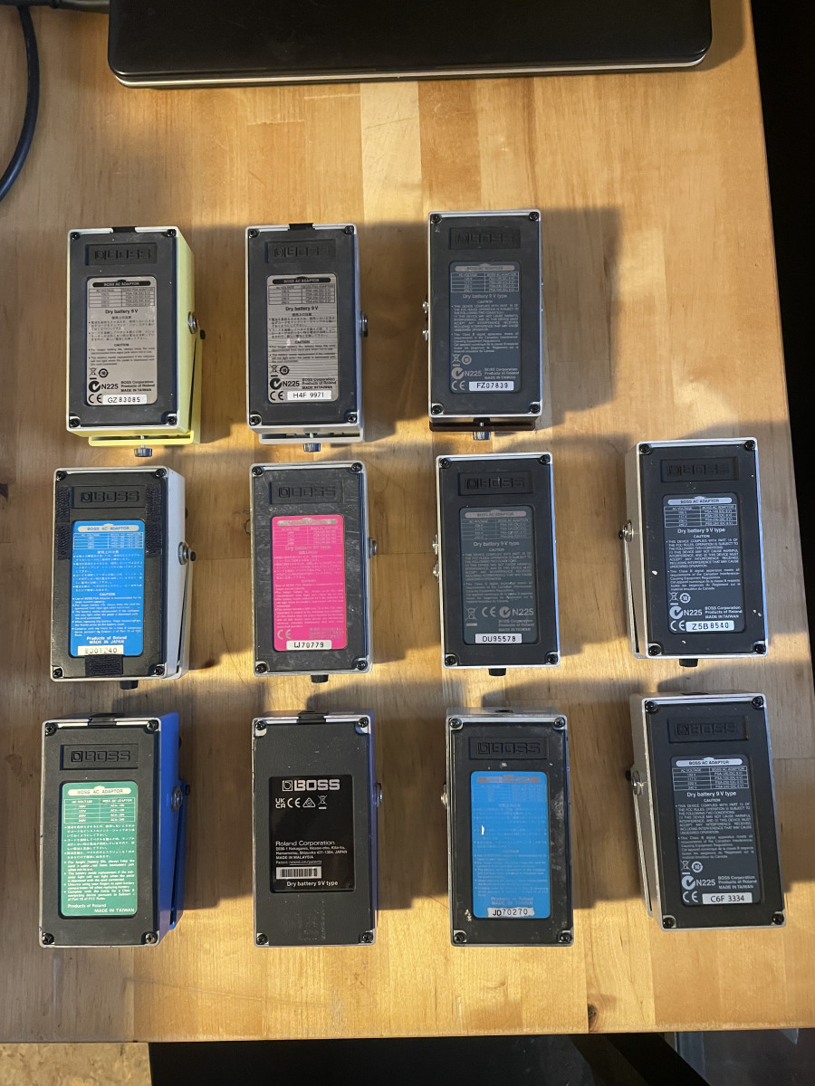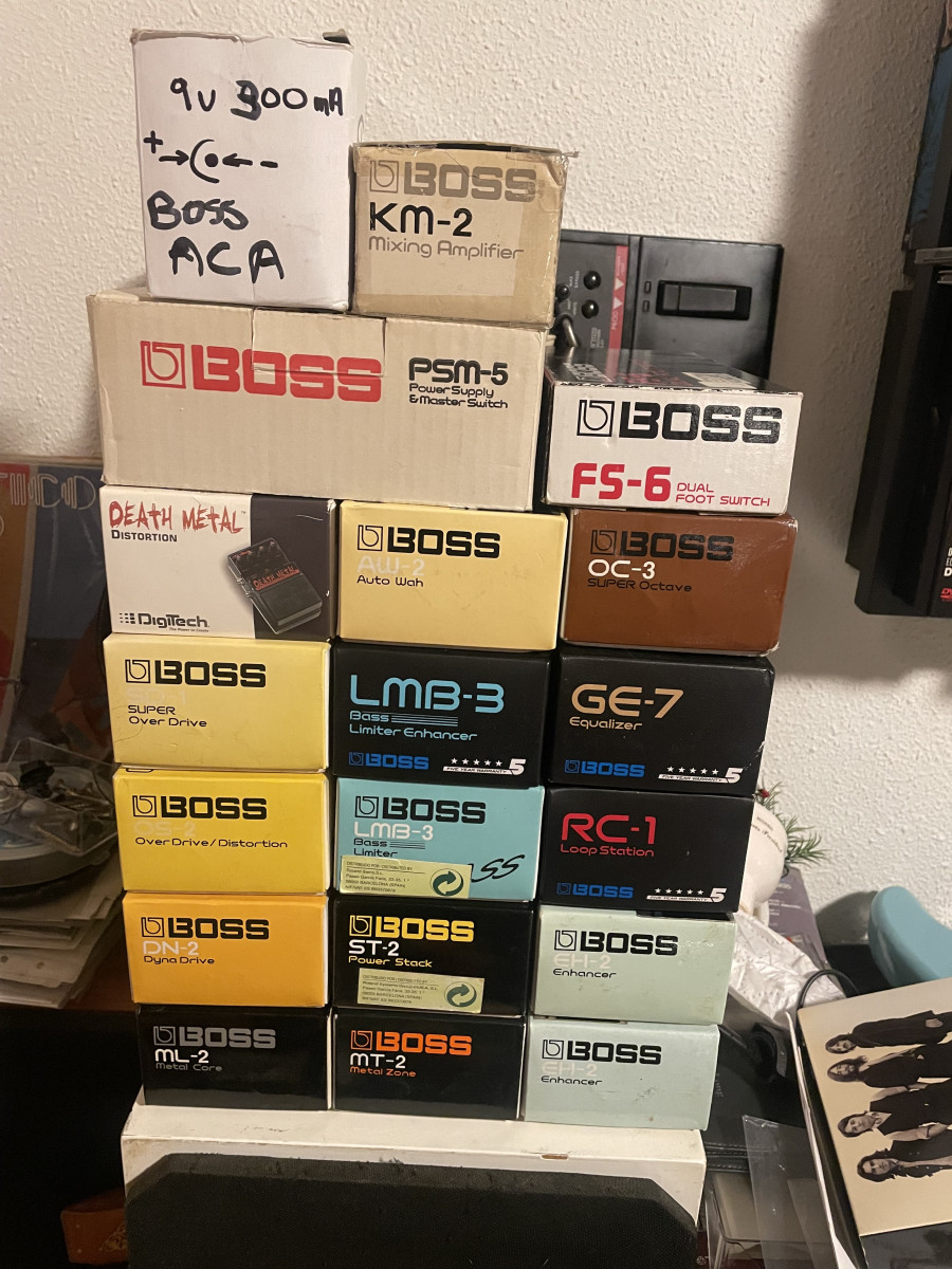Colección de pedales de efectos para guitarra BOSS, en perfecto estado con sus respectivas cajas la mayoría.