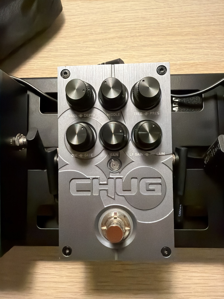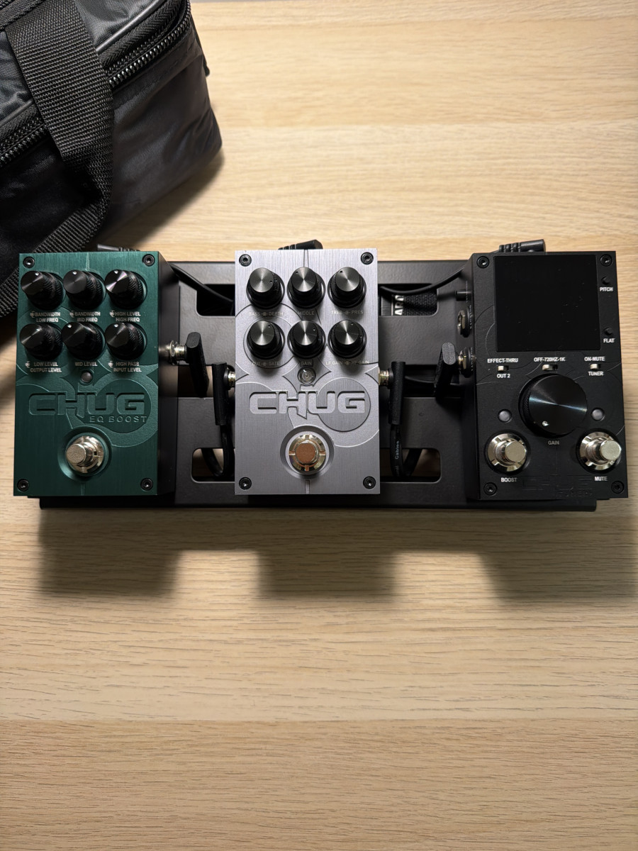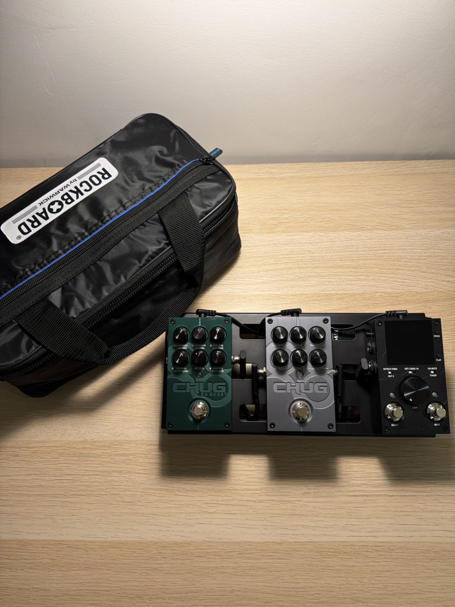 Pedales CHUG by Solar Guitar (Ola Englund) Base Rockboard con su fuete de alimentación y los tres pedales que actualmente existen de la marca CHUG. Preamplificador distorsión con puerta de ruido. Afinador con Booster. Ecualizador con Booster. Desde luego la combinación de los tres no tiene rival en cuanto a sonido metal a través de pedales, muy salvaje. Con un sin fin de posibilidades. Están nuevecitos, solo los he pulsado con la mano, jamás han salido de casa ni se han pisado. A estrenar. No hago cambios.