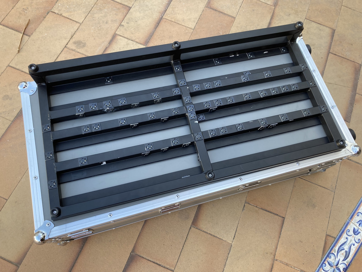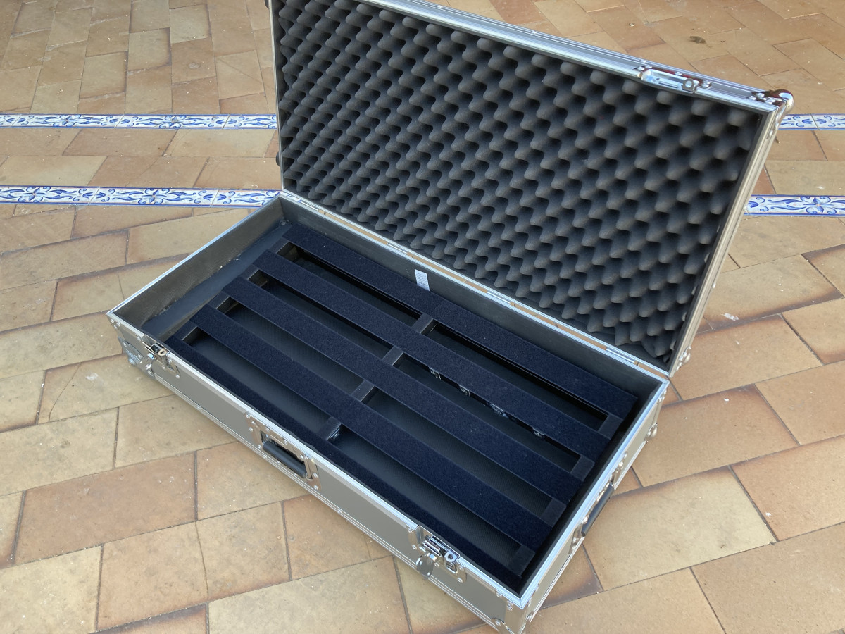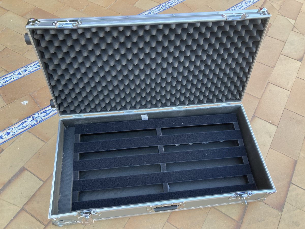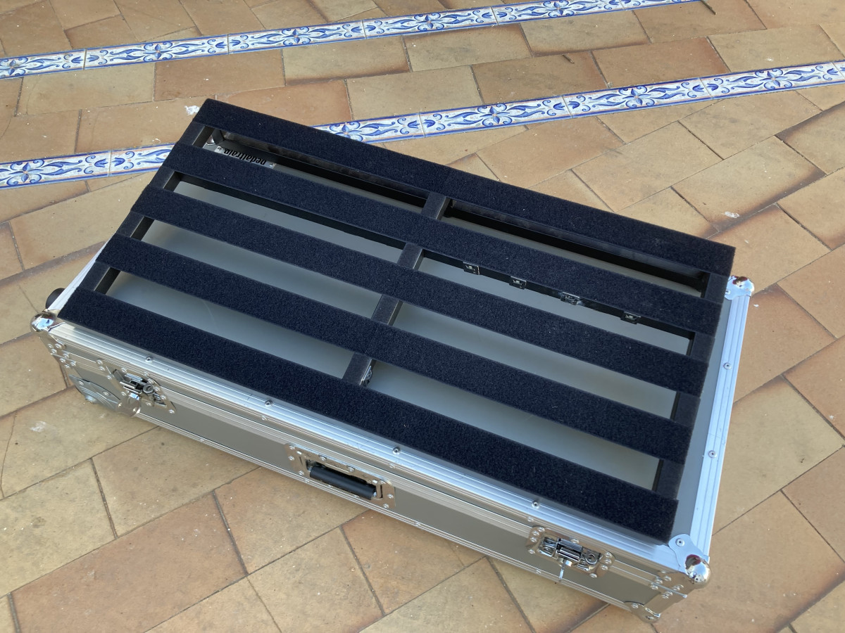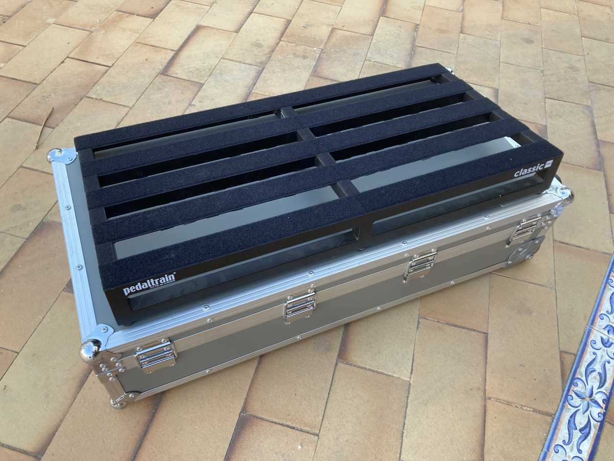 Vendo Pedaltrain Classic Pro Tour Case con ruedas en perfecto estado, como nueva, solo con algún pequeño taladro para sujetar la fuente de alimentación, por lo demás está casi a estrenar. Tiene el velcro ya instalado y sujeciones para los cables, todo va pegado y se puede retirar sin dejar rastro, las dejo puestas por si te pueden servir para tus cables.