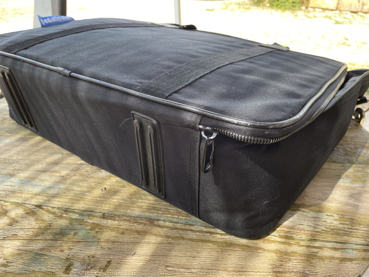 Respecto a la funda, la cremallera no funciona bien, solo cierra hasta la mitad, con lo cual no hace muy práctico su transporte.