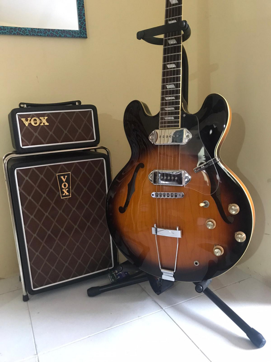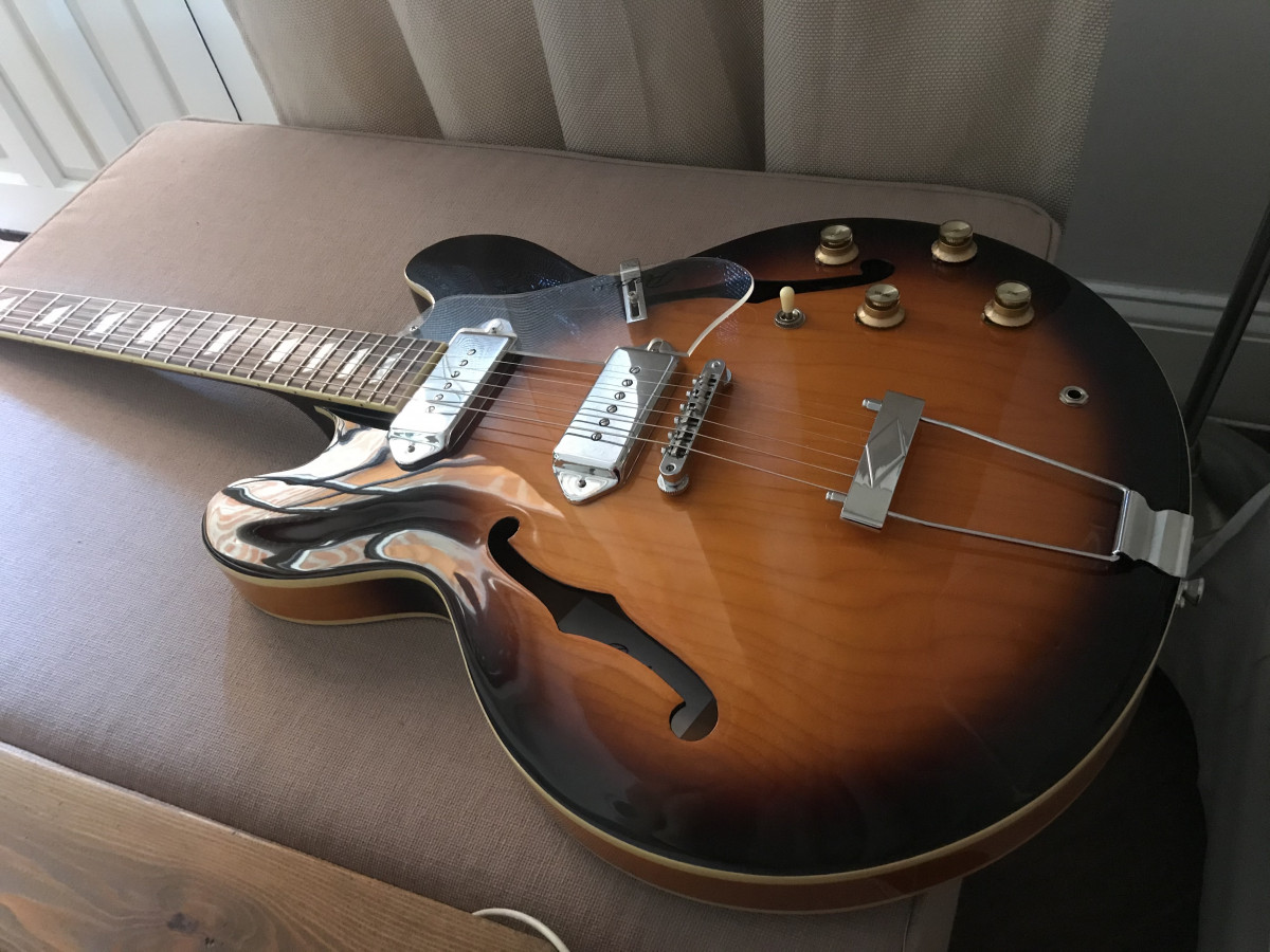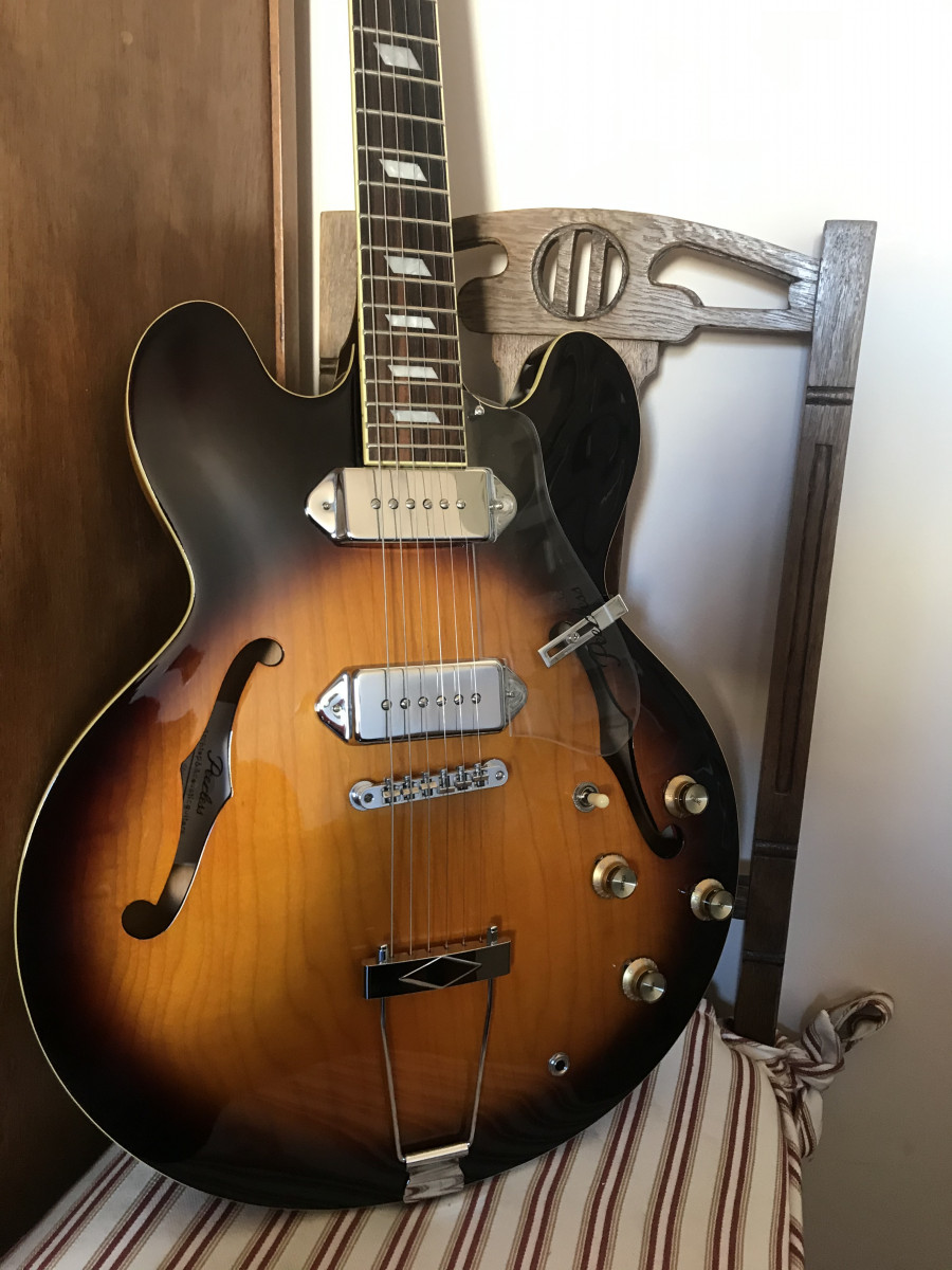 Estupenda guitarra de caja con p90’s rollo casino, Made in Korea con buena calidad de materiales y acabados, muy buen tacto, ajuste y sonido... y no pesa nada!