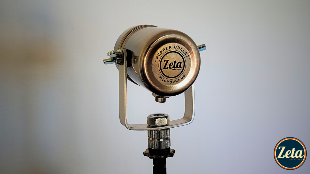 El "Pepper Bullet" es un micrófono con un sonido y estética tremendos! Su sonido proviene de una cápsula de teléfono vintage que ofrece todo el "mojo" que quieras! el soporte de aluminio hecho a mano termina de agregar el toque estético y funcional de esta pieza! con un jack standard de guitarra puedes conectar el mic directamente a tu amp, interfaz de audio, mixer y, lo más divertido, a pedales de efectos! una herramienta que no puede faltar en tu arsenal musical o estudio de grabación!