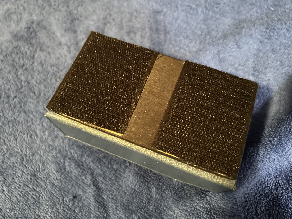 Está impecable, como nuevo. Tiene velcro. Yo le pegué una base de madera para poder poner el velcro, ya que los tornillos inferiores no dejaban pegarlo bien.