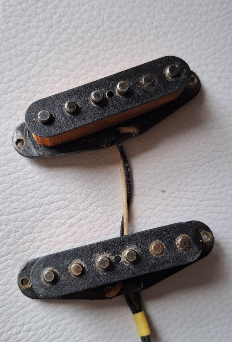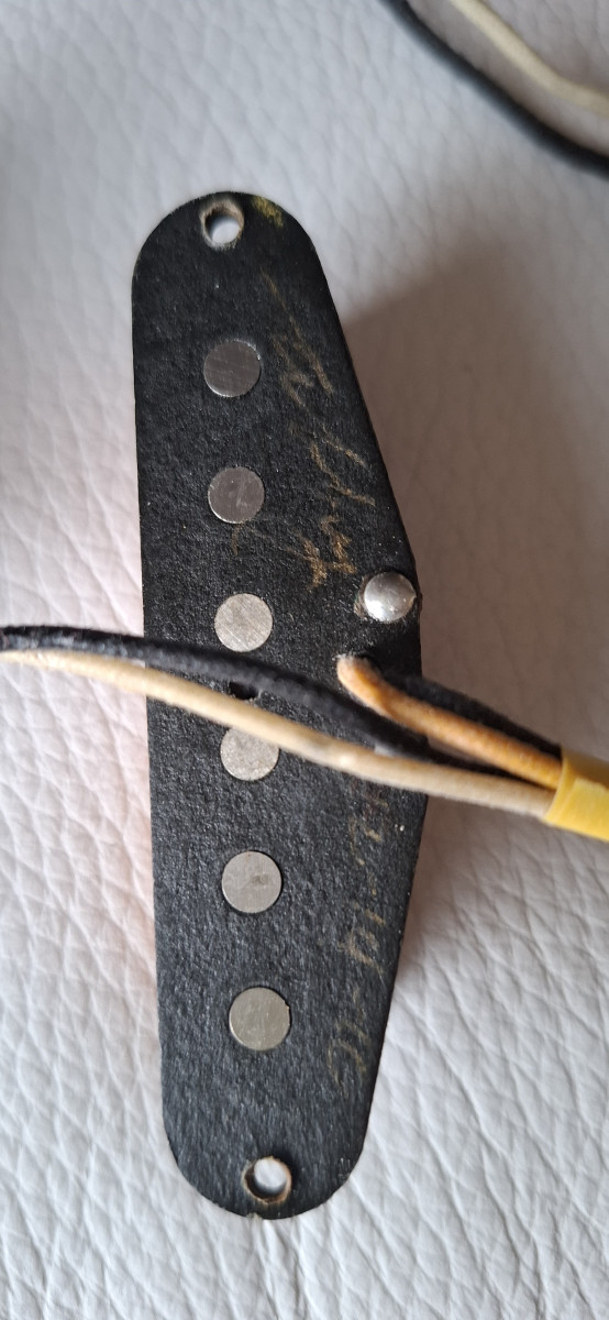 Vendo dos Pickups de una Fender Custom shop Relic del 2010 de Abigail Ybarra. Firmadas por ella pero que se ve ya muy poquito la firma, pero aseguro que son originales 100%. La del medio es Rp/Rw canceladora de ruido. Van con tapas y tornillos Relic. La del puente no la tengo porque llevaba una Sh4 de Duncan.