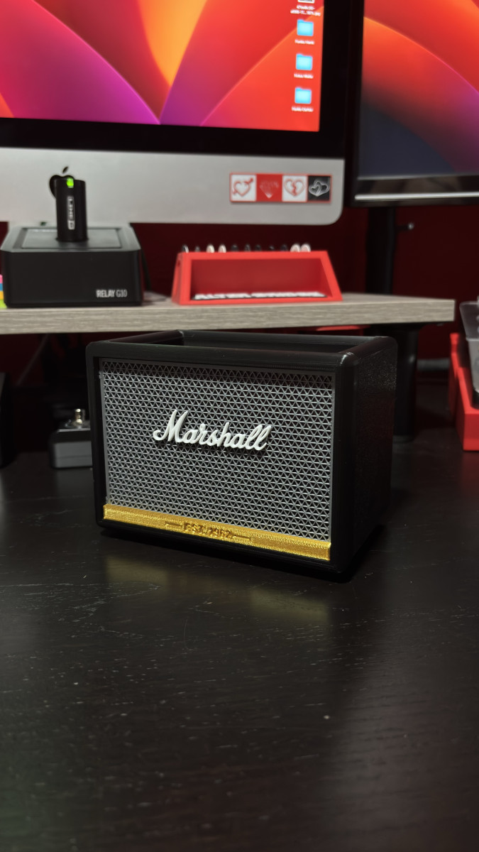 Organizador de escritorio con diseño de amplificador Marshall. Es una pieza única, ideal para amantes de la música.