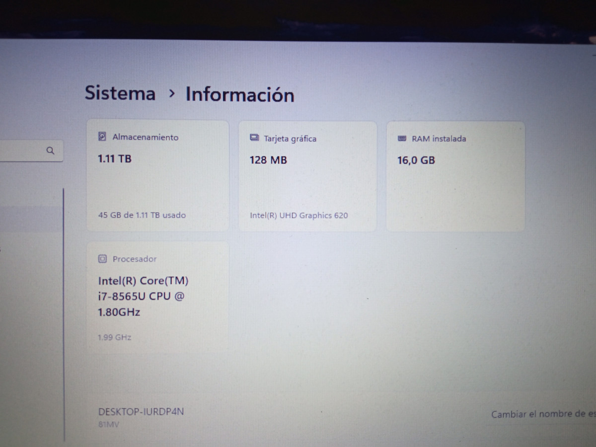 Portatil Lenovo IdeaPad S145, i7 1.80GHz , 16gb RAM,SSD1,1Tb + 237Gb