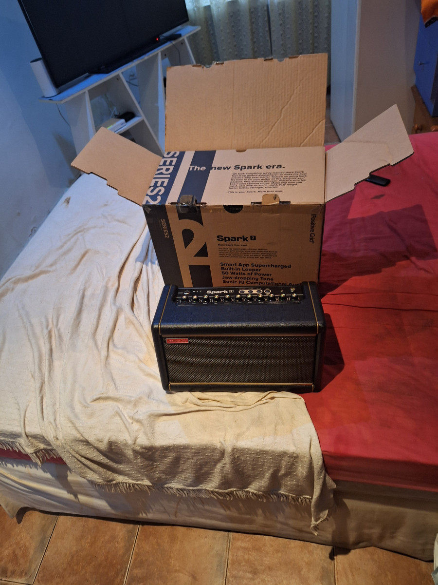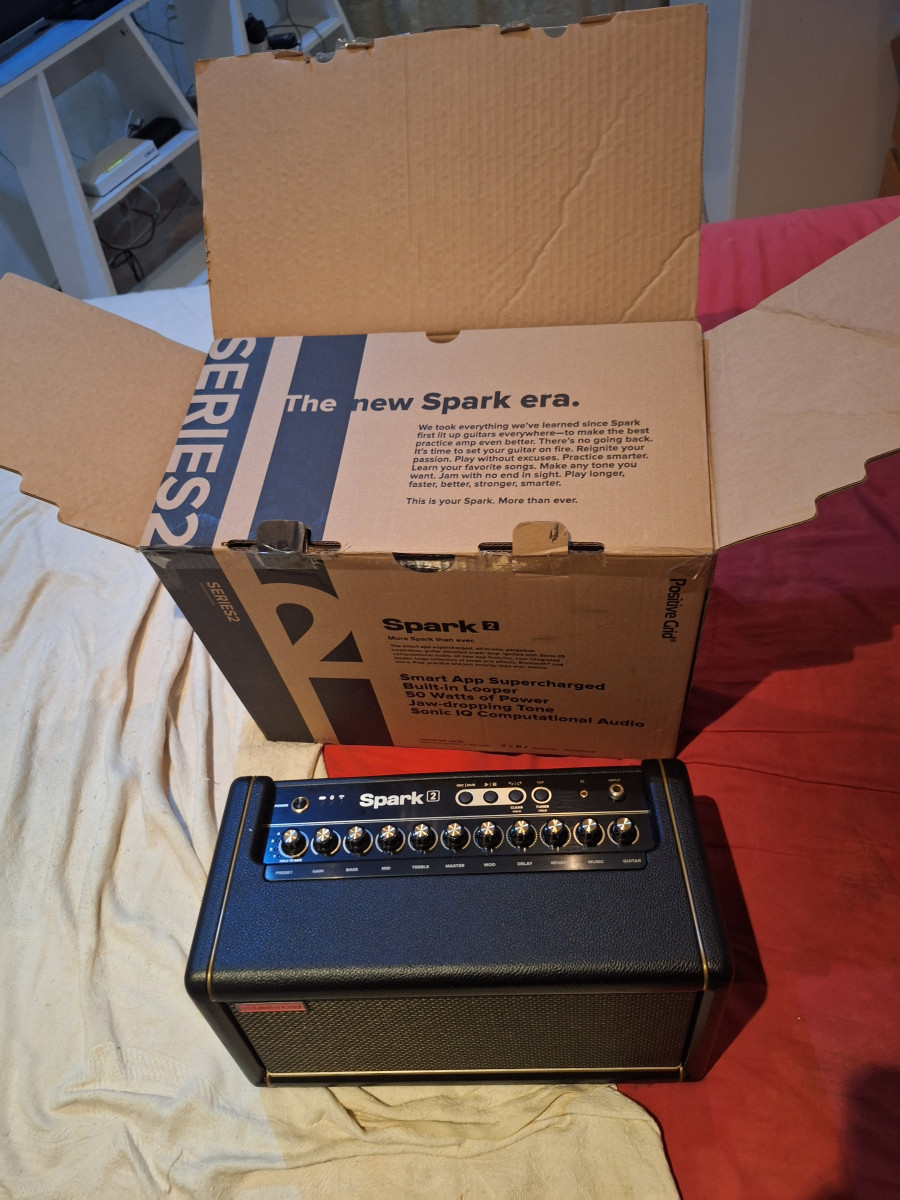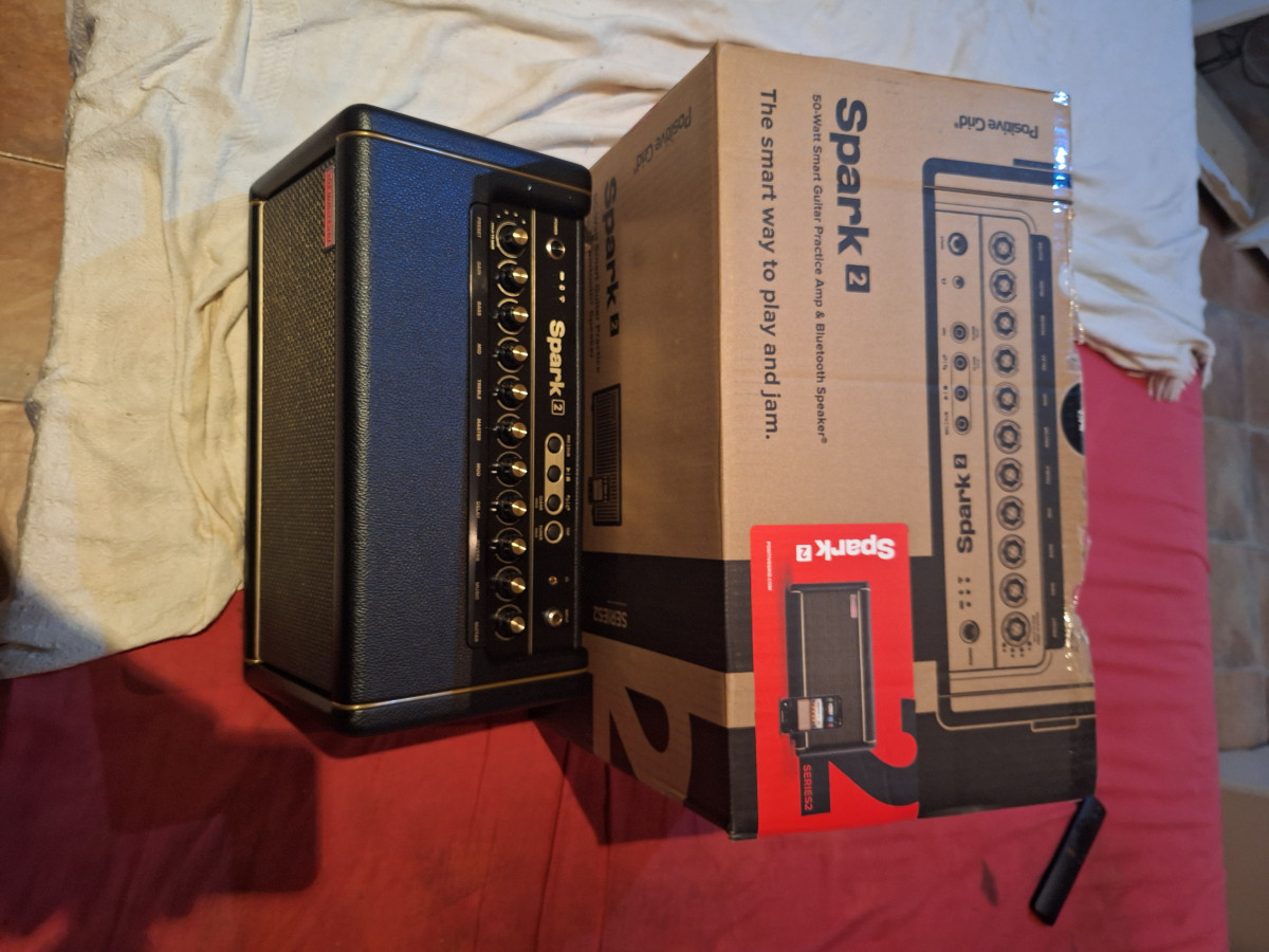 de guitarra Positive Grid Spark 2, prácticamente nuevo y en su caja original. Ideal para practicar y componer.