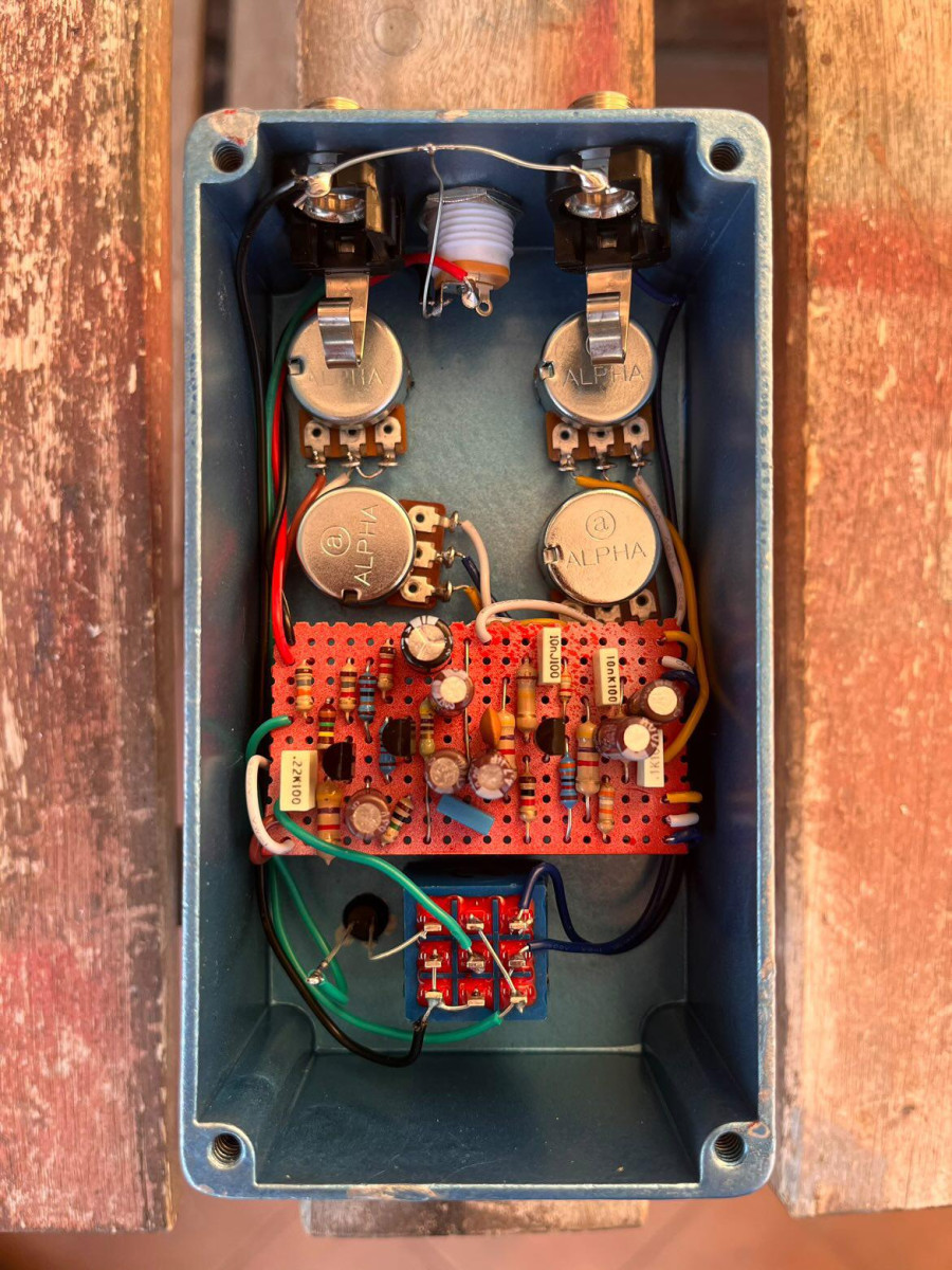 El control de ganancia en lugar de funcionar como en el original, donde teníamos un booster cálido y precioso durante un 90% del recorrido y en el 10% restante un overdrive que acababa convirtiéndose en Fuzz, está modificado para tener un control del rango mucho más fácil de trabajar.