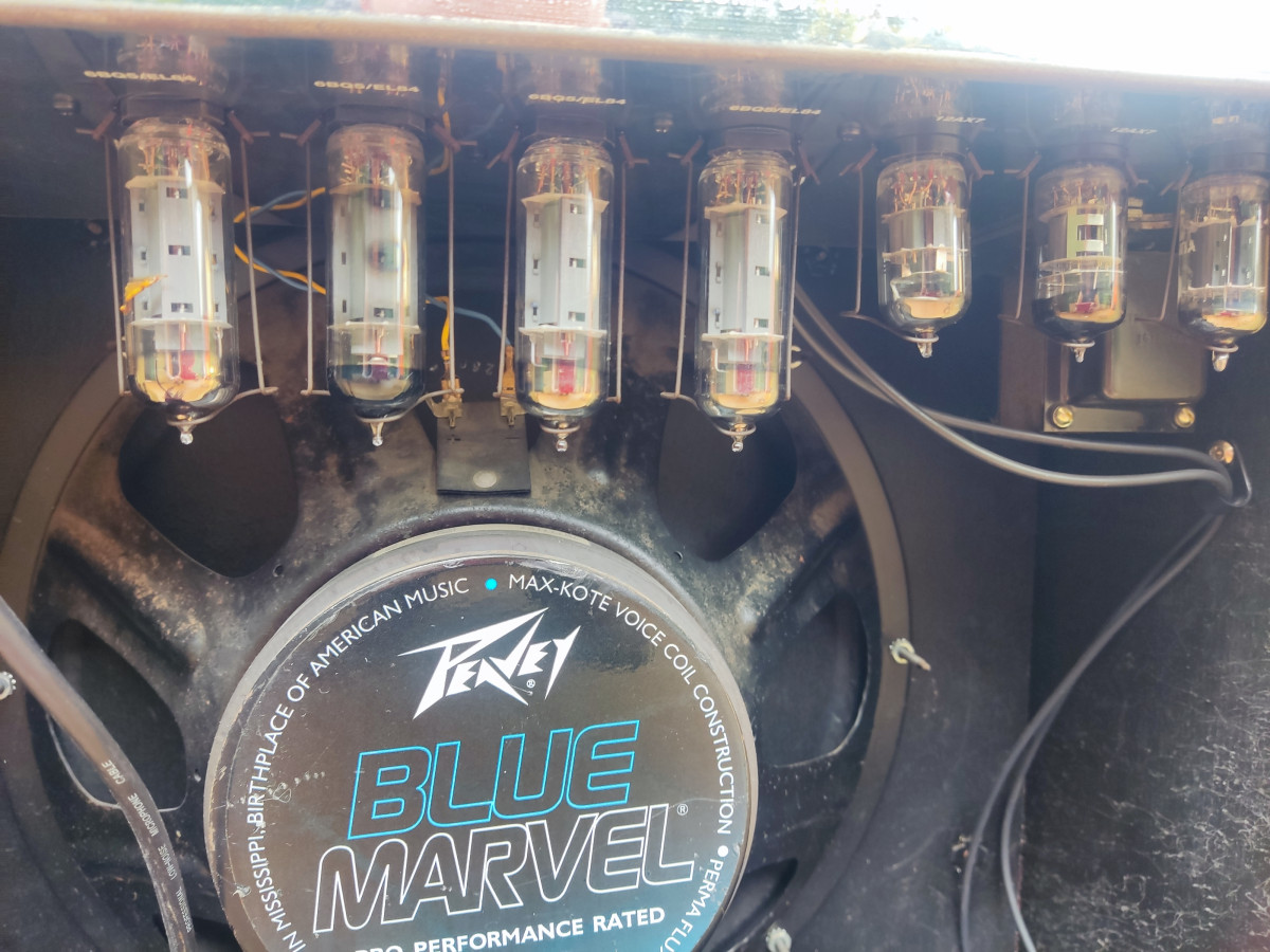 Completamente a válvulas. 30 wtts. Previo 3x 12 ax7; etapa 4x el84. Dos canales, limpio y saturado. Se puede apretar mucho el canal Drive. Reverb a muelles y trémolo completamente a válvulas. Altavoz original Blue Marvel de 15'.