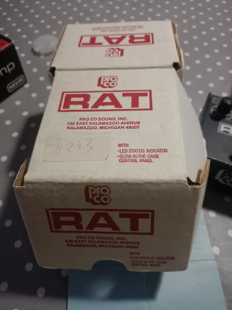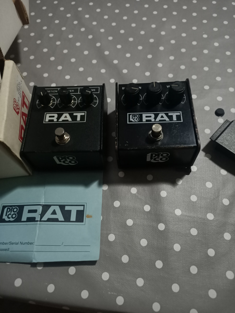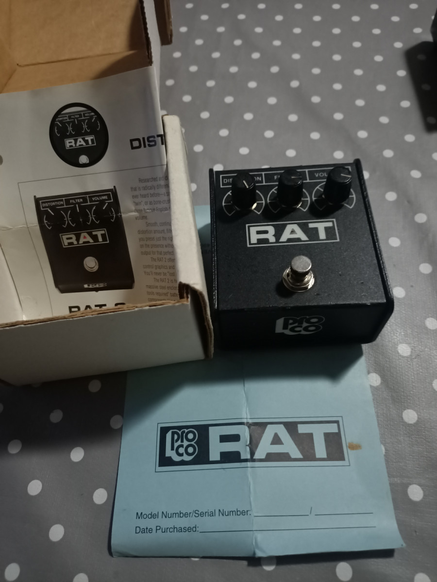 Proco rat años 90,s, no sabría datarlo exactamente, aunque ya algunos foreros me habéis informado que sobre el 97 por el número de serie,es plain box y unidad anterior a la 300.000. Se encuentra en perfecto estado, pero decir que fue modificado, se le puso un switch true by pass de mejor calidad y se cambió la toma de corriente por una tipo Boss, invertiendo la polaridad para que se pueda utilizar con cualquier fuente sin necesidad del adaptador, igualmente funciona también con batería .Conservo la caja y papelotes originales, añadir por otro lado,que el chip que tiene es el LM 308 de la National Components (absorbida por Texas instruments) y no el Motorola , a mí me parece brutal y de hecho es el que más utilizo, las diferencias entre éste y el otro que tengo anunciado, sòlamente son distinguibles a volúmenes indecentes y no es mucha, igualme como digo en el otro anuncio lo retiraré si vendo antes el otro que tengo anunciado.No cambios plisss.