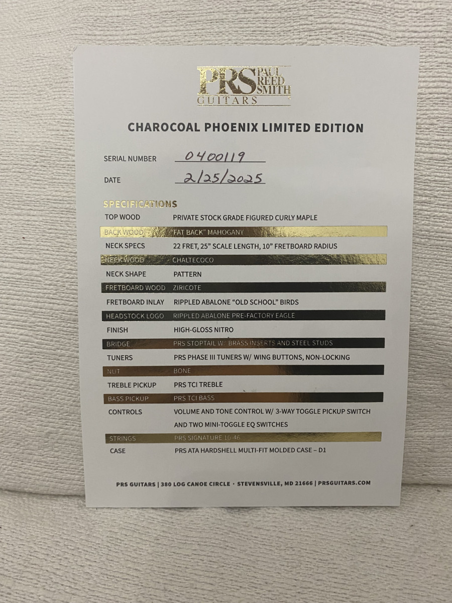 PRS 40 Anniversary Phoenix Charocoal Limited Edition