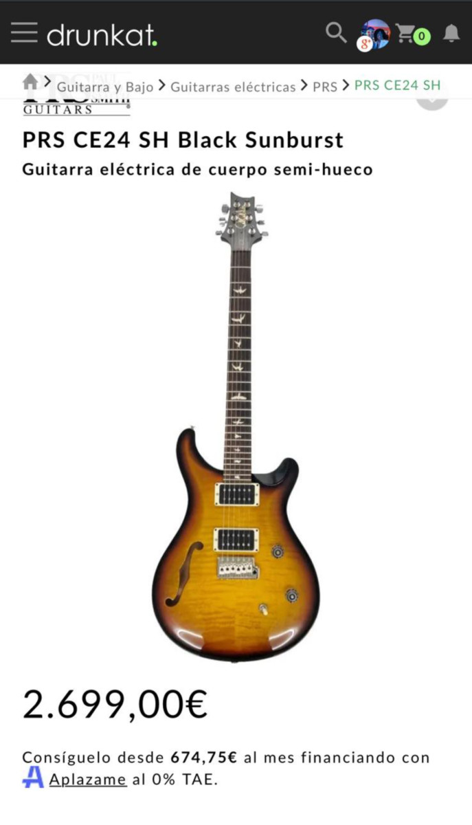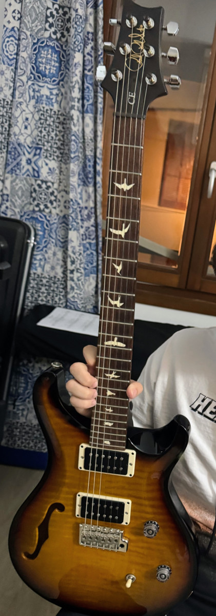 Guitarra comprada en Drunkat hace un mes para el regalo de Navidad de mi hijo y entregada el día de papá Noel , no se ha adaptado al tipo de mástil de PRS .
