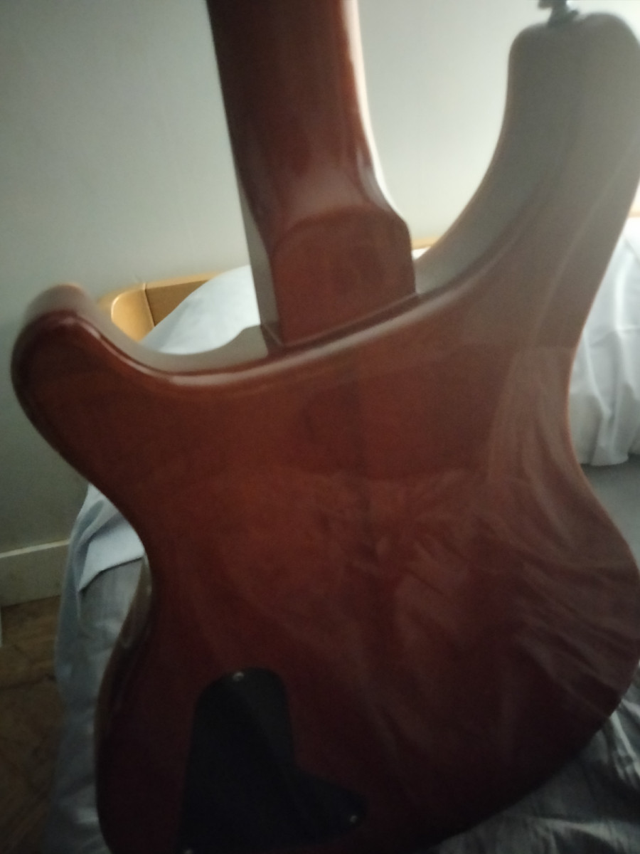 Muestra ligeras marcas en la laca de la parte trasera de la guitarra apenas visibles. El resto está impecable.