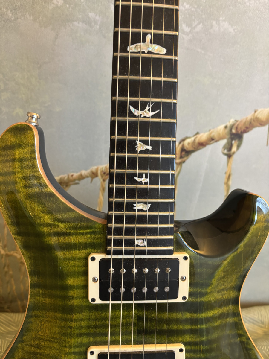 En buen estado. Una custom 24 bastante rara de ver, diapason de ebano, mastil de arce flameado con perfil Wide thin, cuerpo de caoba y tapa de arce flameado.