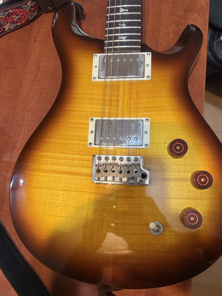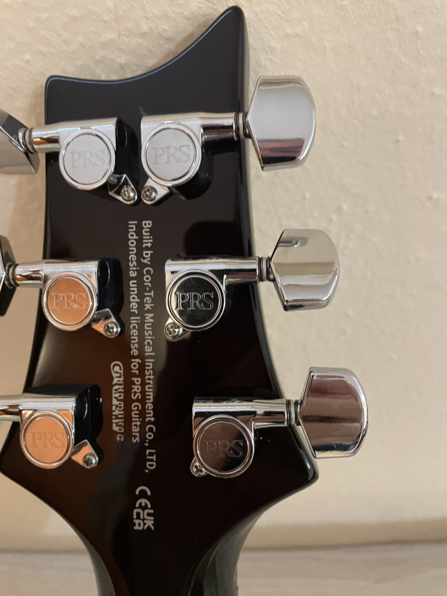 Guitarra nueva, no tiene ni un arañazo, cuando se compró se ajustó bien y se le pusieron clavijas originales PRS con bloqueo costaron 100 euros, entrego las originales también, el resto de fábrica.