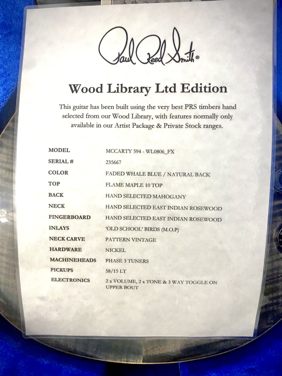 CAMBIOS, PRS Wood Library, limited Edition,10 Top en Barcelona6500 €
