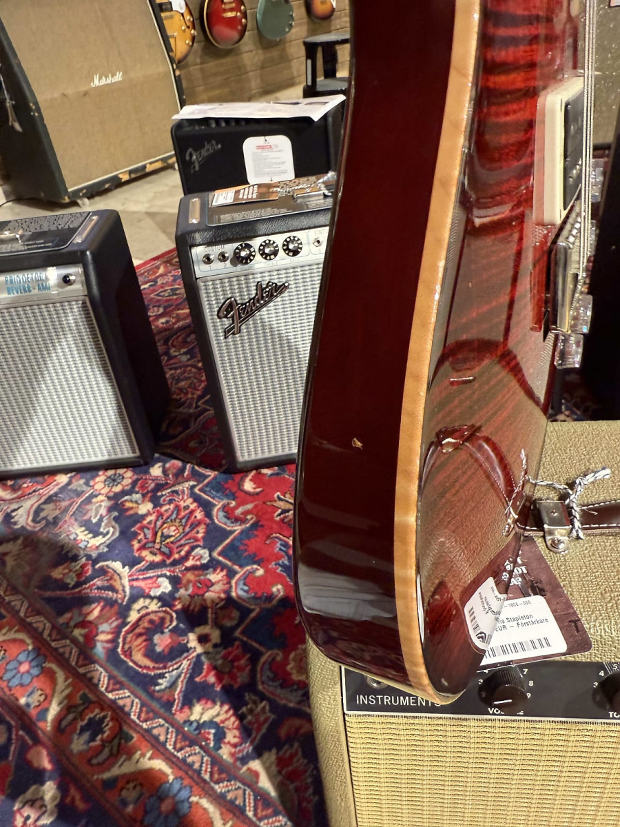 La guitarra esta en muy buen estado en general, pero tiene algunas marcas de uso como se ve en las fotos. Lo mejor es verla. Trastes en estado impecable. Todo original con sus papeles. Tengo unos marcos de pastilla PRS originales en negro para cambiar si se quiere.