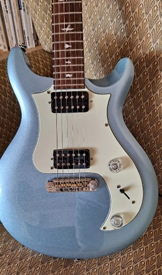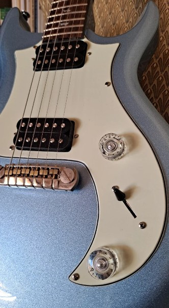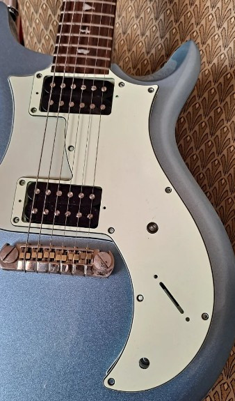 Guitarra eléctrica PRS SE en acabado azul metalizado ( Frost Metalic Blue ). Está en excelentes condiciones y lista para tocar. Pastillas PRS Humbucker convertibles a Simples mediante botón push-pull. Pickguard cambiado por uno estilo de la gama S2 SIN HACER AGUJEROS EXTRA. Se incluye el pickguard original. Está de tienda, ni golpes ni rayadas. Vendo por exceso de material. ULTIMA REBAJA