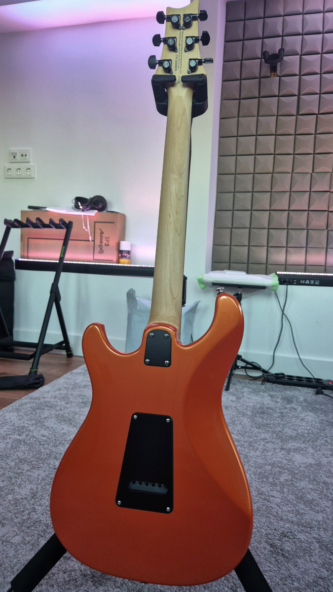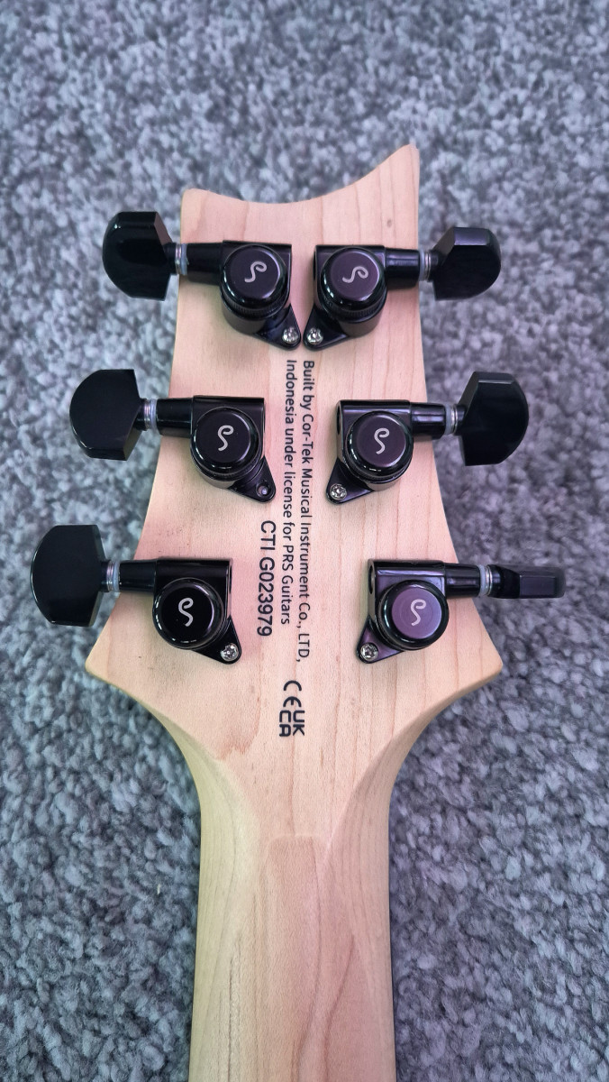 Espectacular y llamativa guitarra eléctrica PRS en color Metallic Orange: Cuerpo de álamo, mástil wide thin de arce, diapasón de palisandro de radio 10" y con incrustaciones de pájaros, 3 pastillas narrowfield DD “S” Single Coils (emulan a las humbucker), 1 volumen y 1 tono, selector de 5 posiciones, mejorada con clavijero Schaller negro de bloqueo (134€). Incluye bolsa de transporte. Está nueva, vendo únicamente por exceso de guitarras.