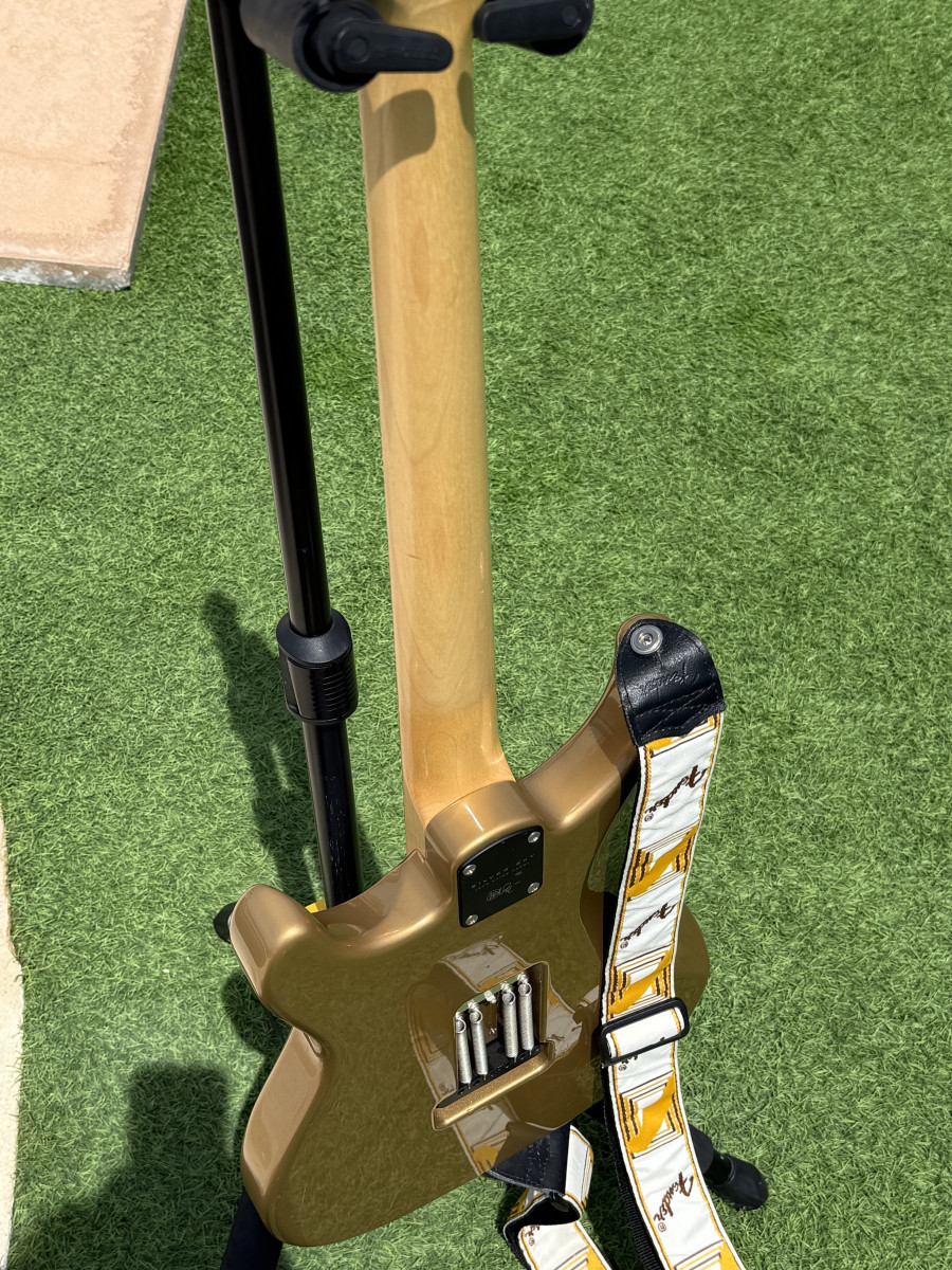 Tiene muchas marcas de uso, es cierto. Conmigo se fue a muchas giras y grabaciones. Se siente como una guitarra bien usada y muy usada - algo que a mi siempre me encanta cuando compro algo usado. Tiene su "mojo".