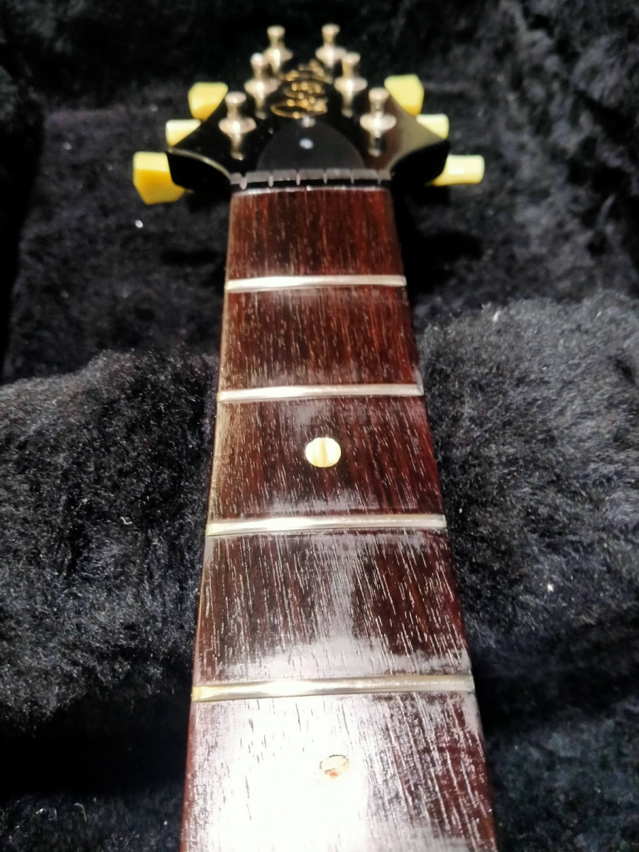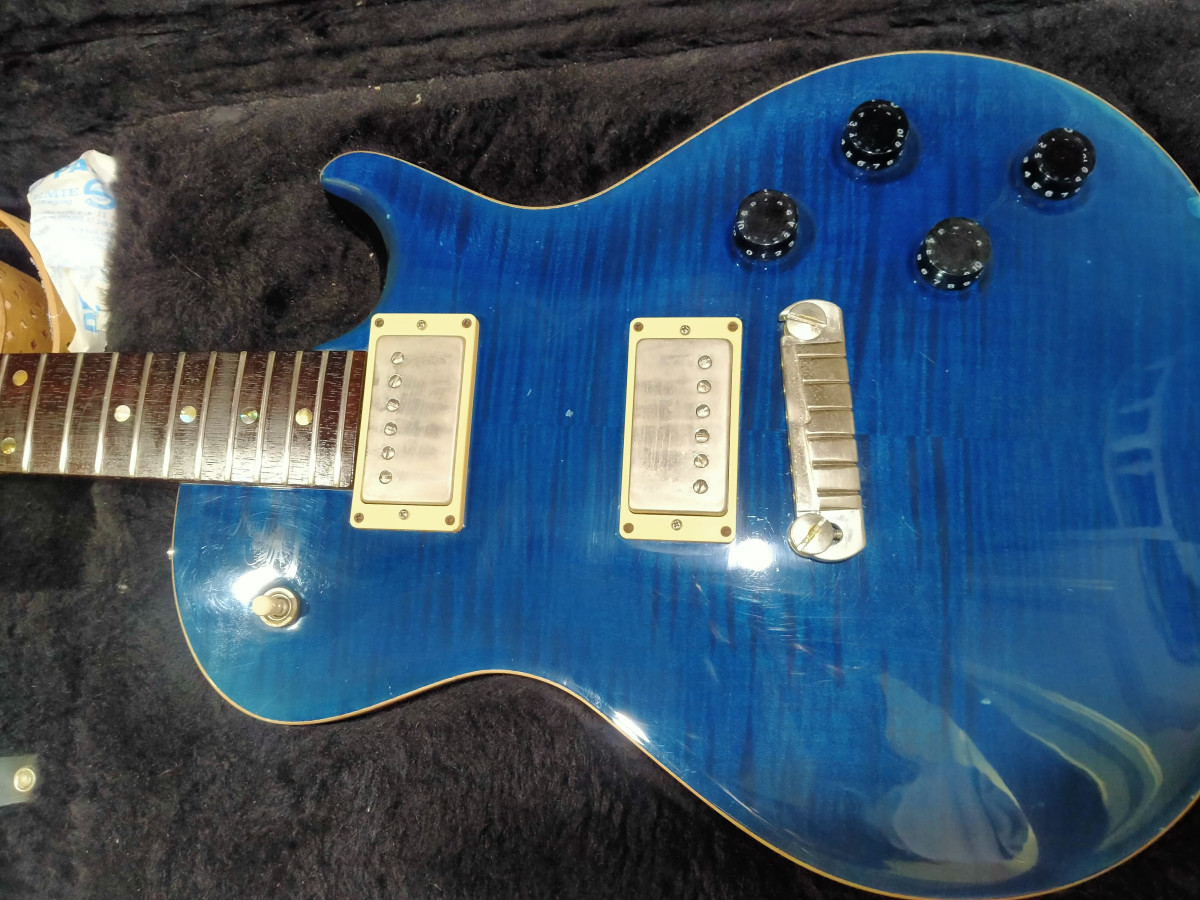 Marcas de uso en trasera por roce con el cinturon y pequeños dings en el cuerpo. Es una guitarra usada y tocada en directo, y aunque no ha sido maltratada tiene marcas. No espereis una PRS impoluta, pues no lo es. Además tiene quitado el brillo en la zona posterior del mastil para mejorar el tacto y deslizamiento de la mano.
