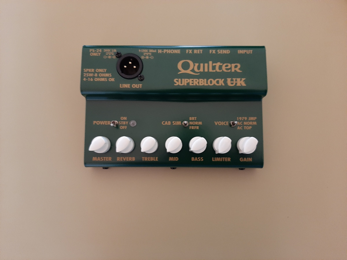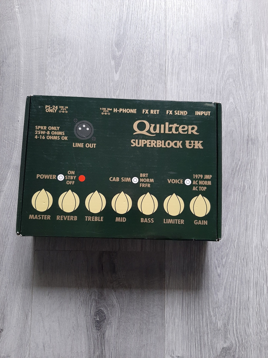 Vendo cabezal analógico Quilter Superblock Uk. Tres sonidos británicos vintage, simulación de cabina, lazo de efectos, salida auriculares, puede funcionar a 1 watt con alimentación de 9 volts. Lo puedes incluir en tu pedalera junto a tus pedales favoritos o llevarlo como "repuesto" por si te falla el ampli.
