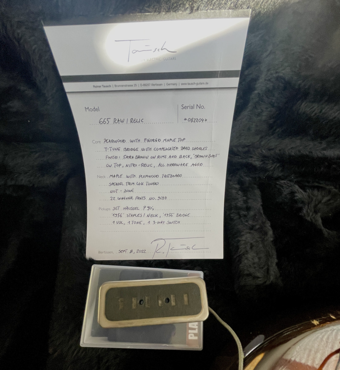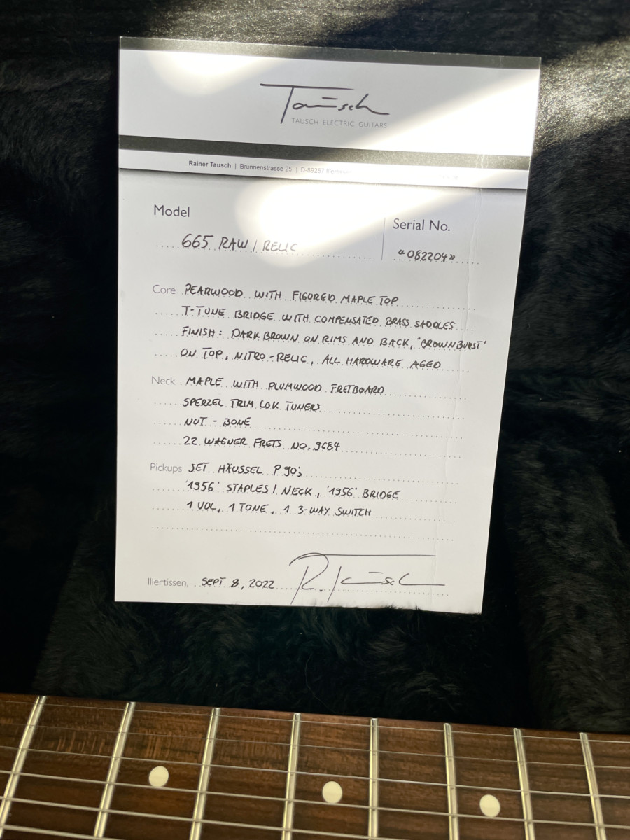For sale in MANNHEIM / GERMANY (shipping in the EU is NO problem !) is a 2022 model "665 RAW" by the german luthier Rainer Tausch. The only modification is a replaced neck pickup - the guitar will be