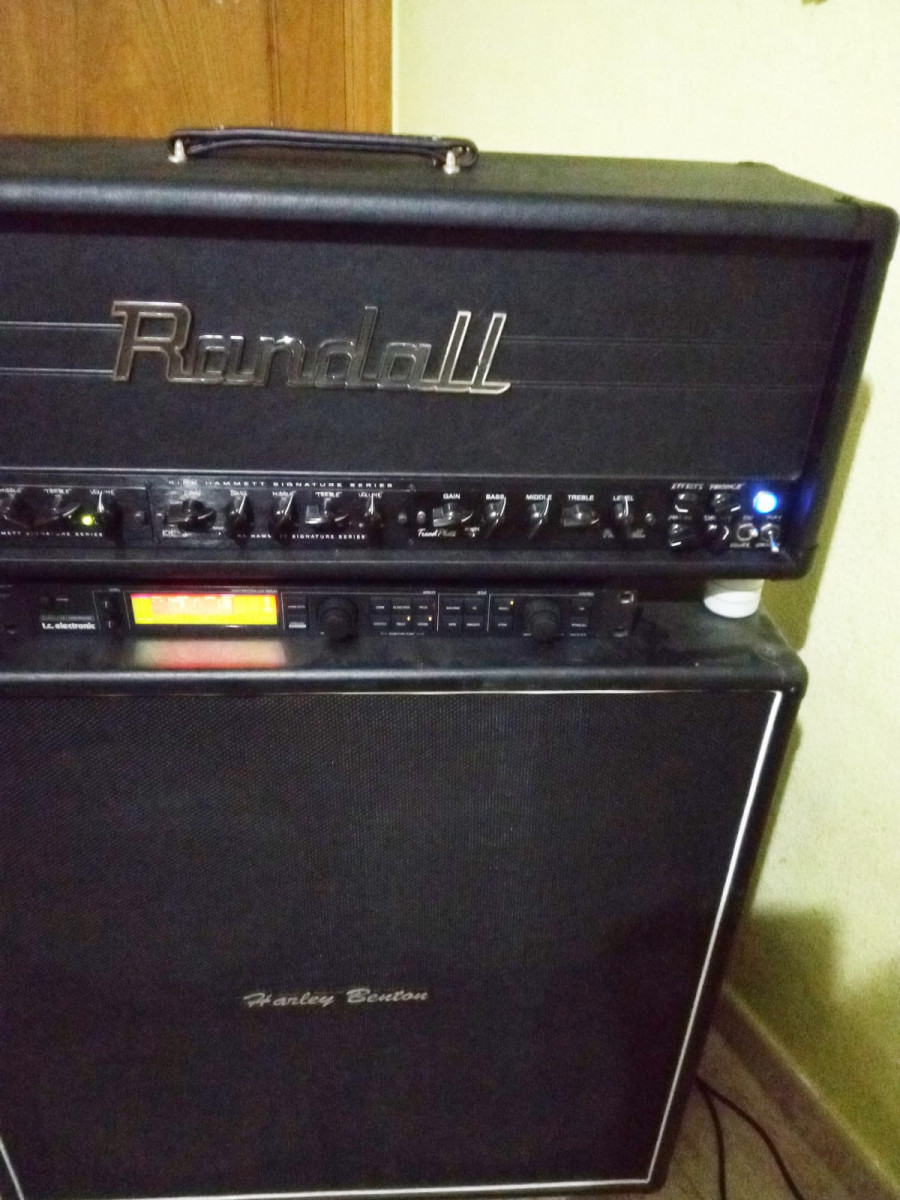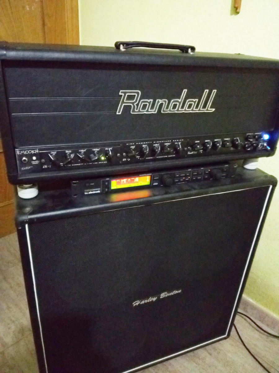 Hola vendo este cabezal Randall RM100KH signature de kirk hammett (Metallica)en su dia rondaba nuevo cerca de 3000e,es una burrada de ampli ,tiene los modulos kh1 limpio,kh2 ritmico y tread plate clon mesa boogie caña burra para solear o rítmica como prefieras,esta revisado por phakkito,monta 4 valvulas 6l6 y 9 12ax7 todas nuevas,incluye su pedalera ,pantalla harley benton 4x12 vintage con conos celestion v30 y multiefectos tc electronic g major, posibilidad de vender por separado.