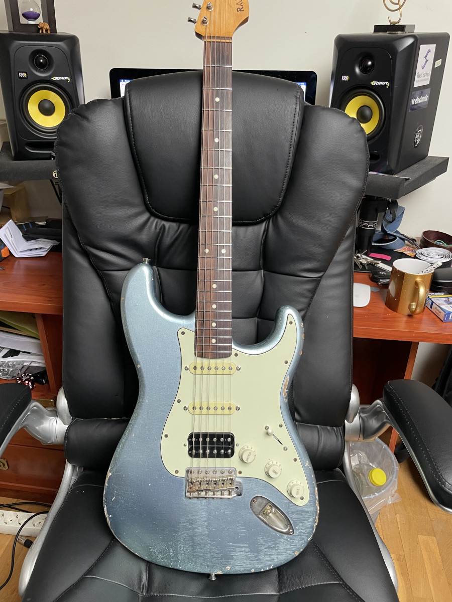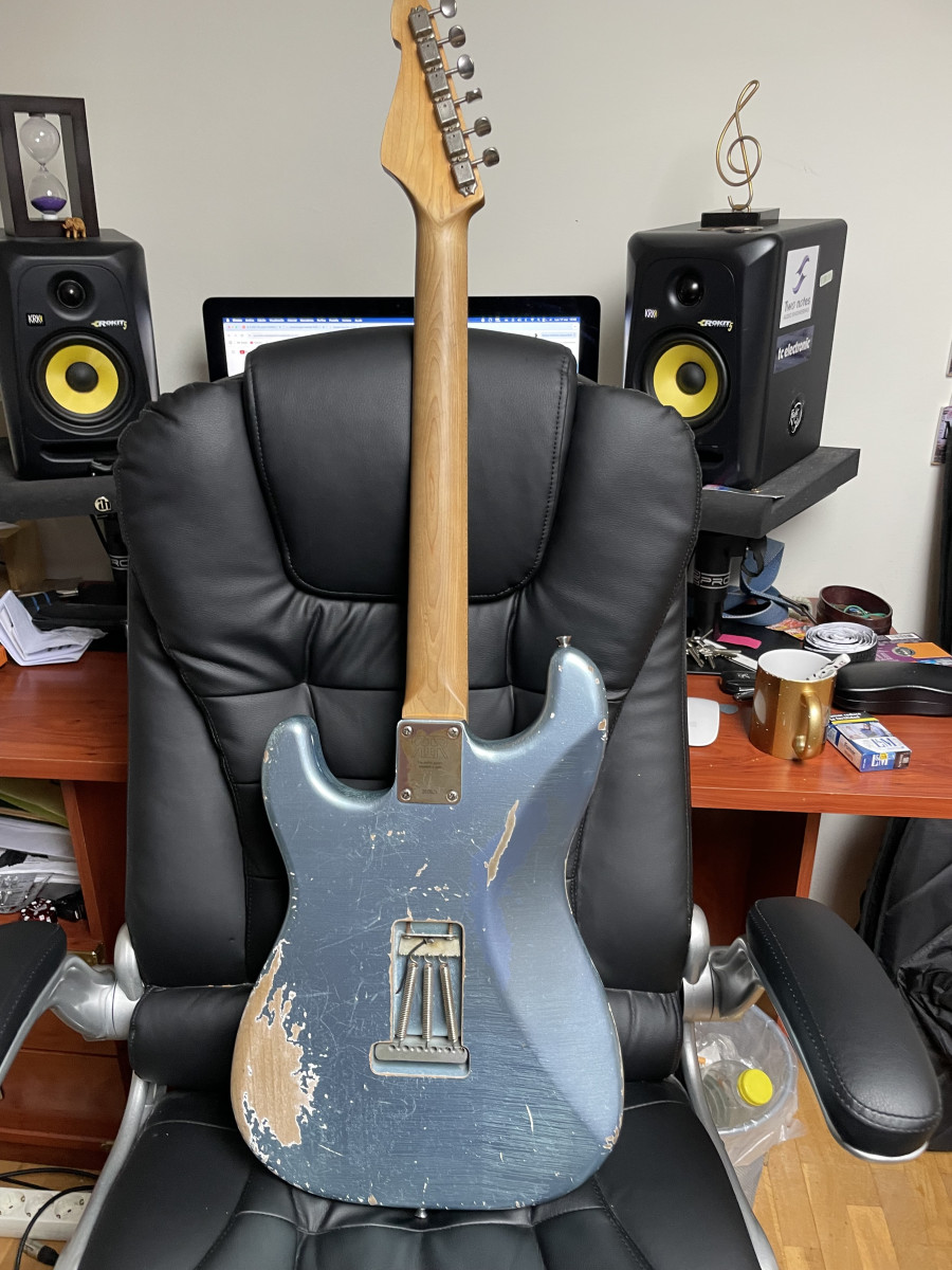 Le he cambiado el golpeador por uno normal y pastillas EVA PICKUPS de Rossi …la guitarra suena y se toca de maravilla ..le he metido dinero . Siempre revisada y ajustada por Juan Brieva en Madrid