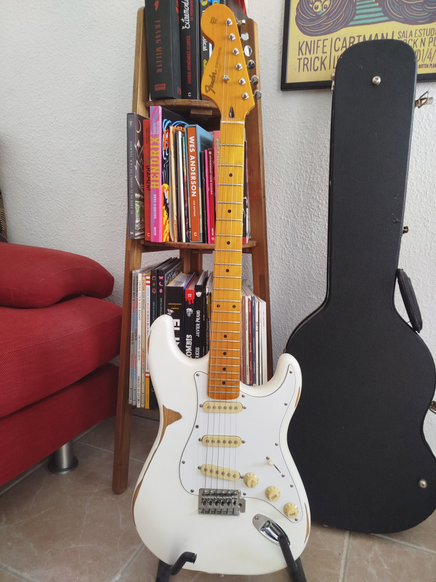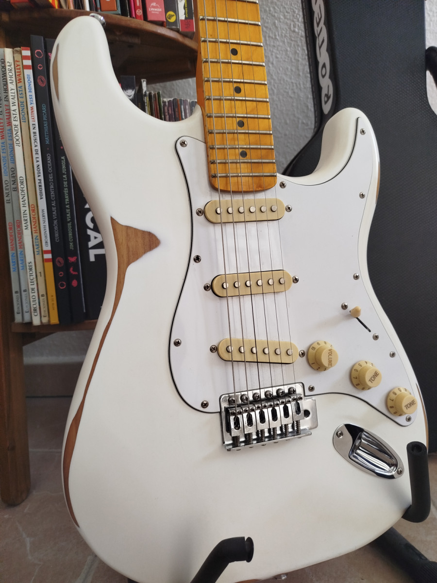 Réplica de la Fender Olympic White de Jimi Hendrix, con relic.