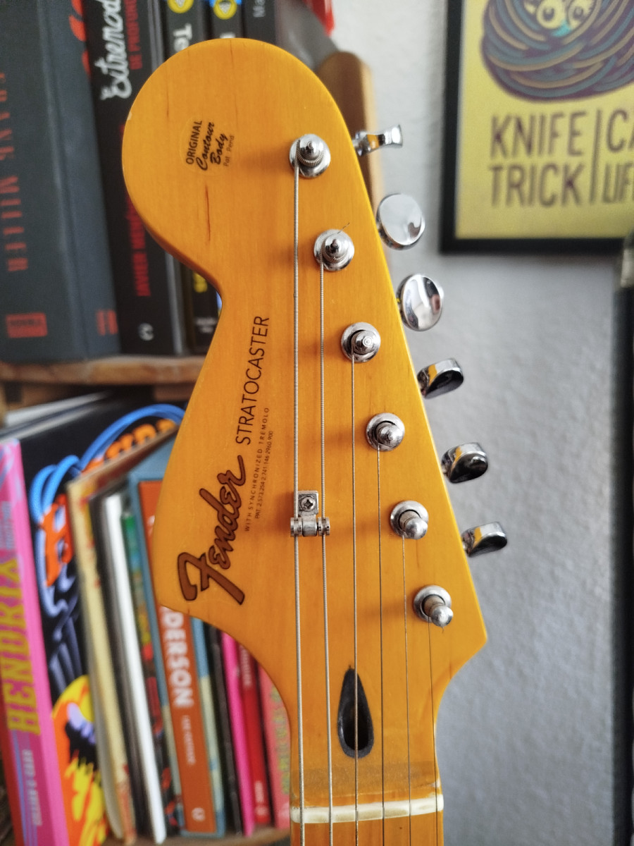 Guitarra estéticamente preciosa, ajustada con una acción bajita comodísima, muy buen tacto. Hecha con piezas squier, sonido calidad/precio muy bueno.