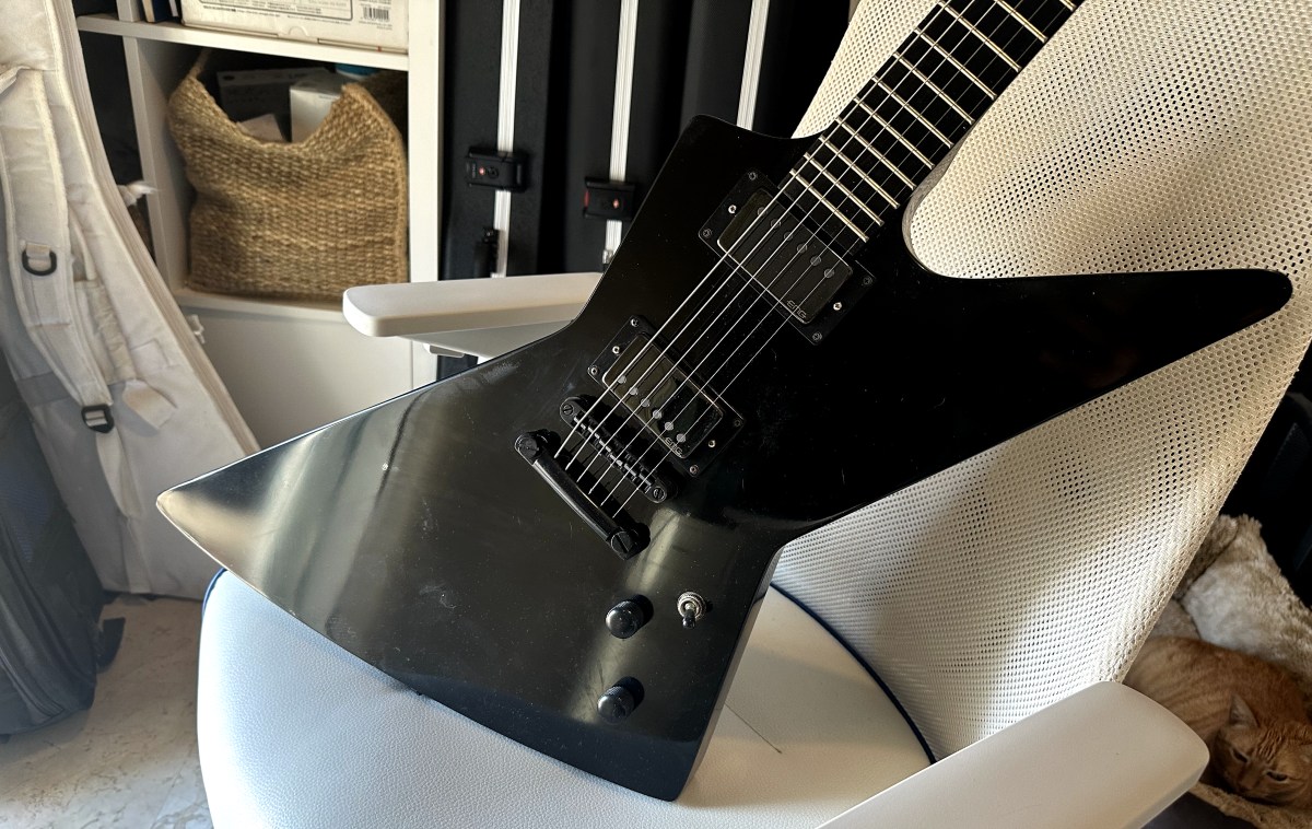 Vendo una imitación del modelo MX-250. Es una buena oportunidad si te gusta esta forma y quieres una guitarra para trastear y salir a tocar sin miedo. Es una de las guitarras que usaba con mi banda. Hemos entrado en un coma indefinido y necesito vender el material que ya no uso.