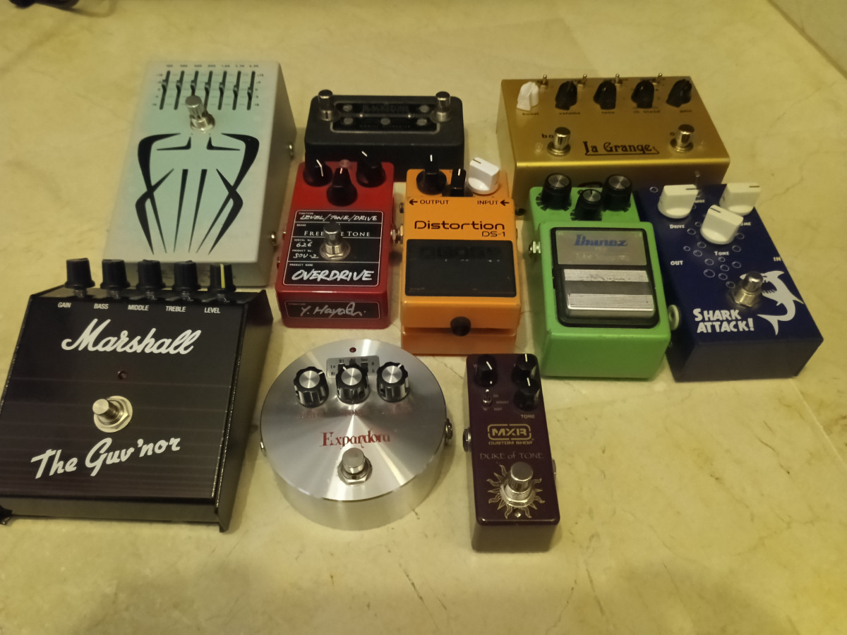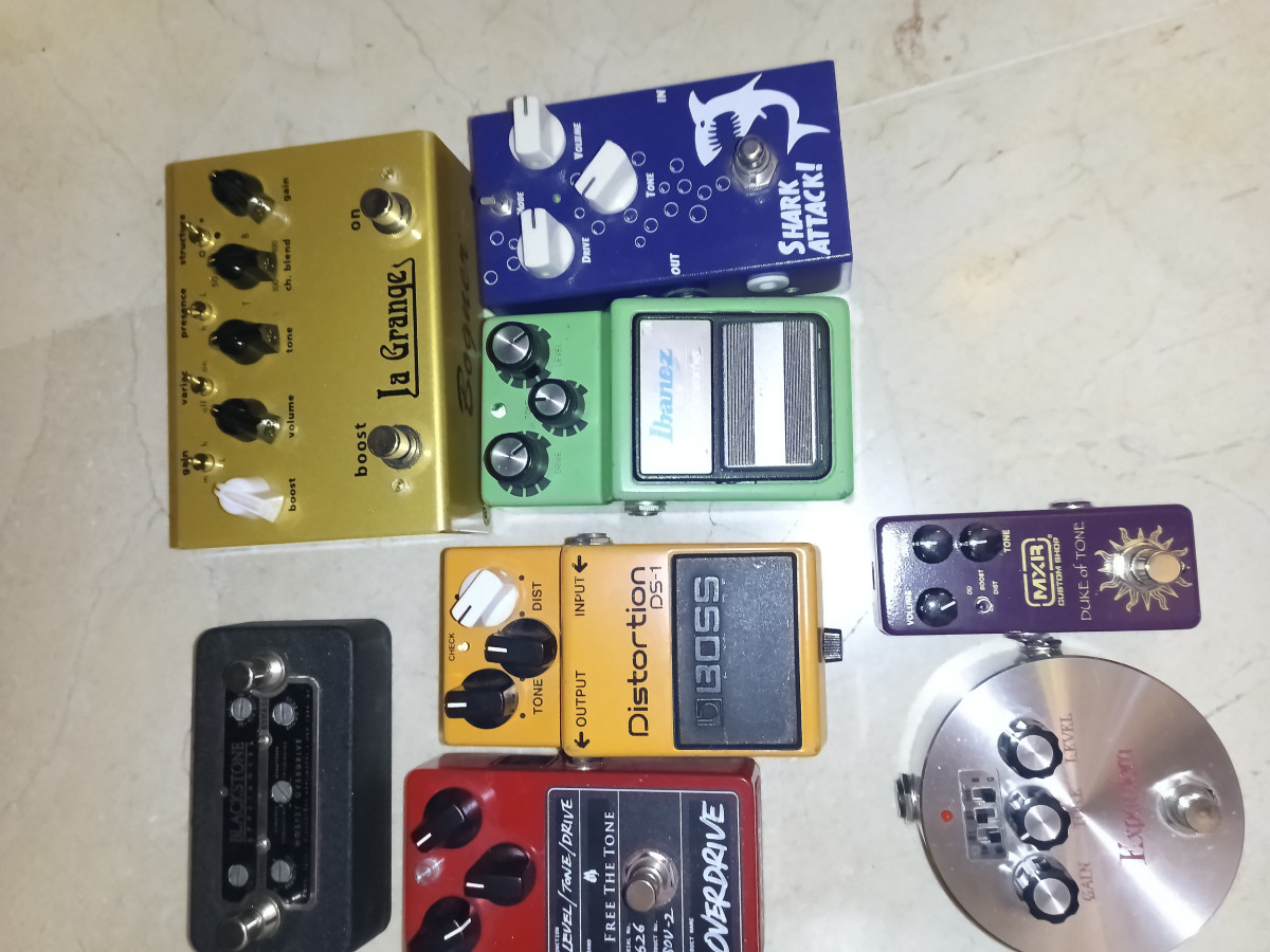 Enormes pedales que buscan un nuevo hogar para que sean queridos y mimados como yo lo he hecho. Todos tienen su caja original a excepción del Blackstone y el Shark. Todos están desde muy buen estado a como nuevos y por supuesto funcionando perfectamente. No cambios. Envío aparte. Price list: