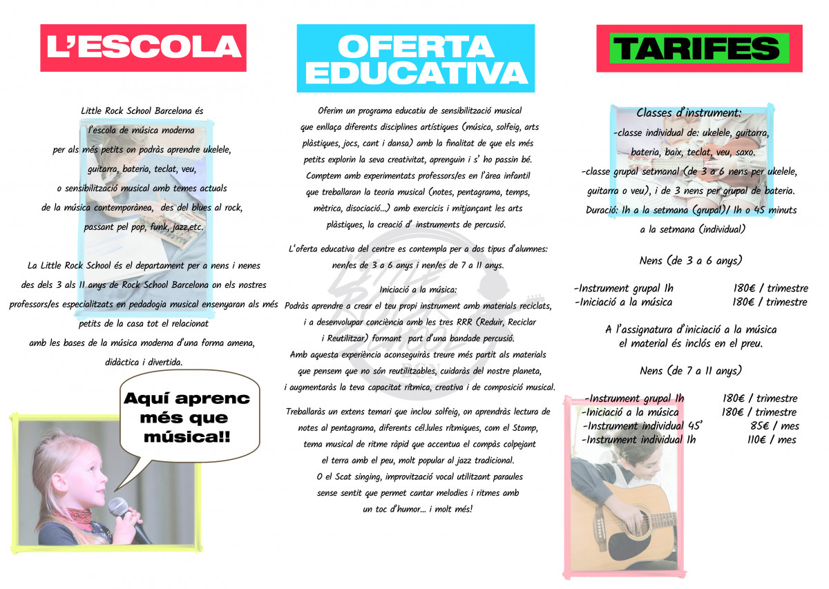 La escuela de música nace en Barcelona sobre 2008 con el nombre HeavyRockSchool y ya en 2016 cambia de local y pasa a llamarse Rock School Barcelona para dar un paso más allá en la oferta educativa de la ciudad, facilitando los estudios de música realmente moderna como el rock, metal, progresivo, blues, funk, fusión, punk, pop y muchos otros estilos y variantes interpretativas que no se encuentran en los temarios de las escuelas de música convencionales.
