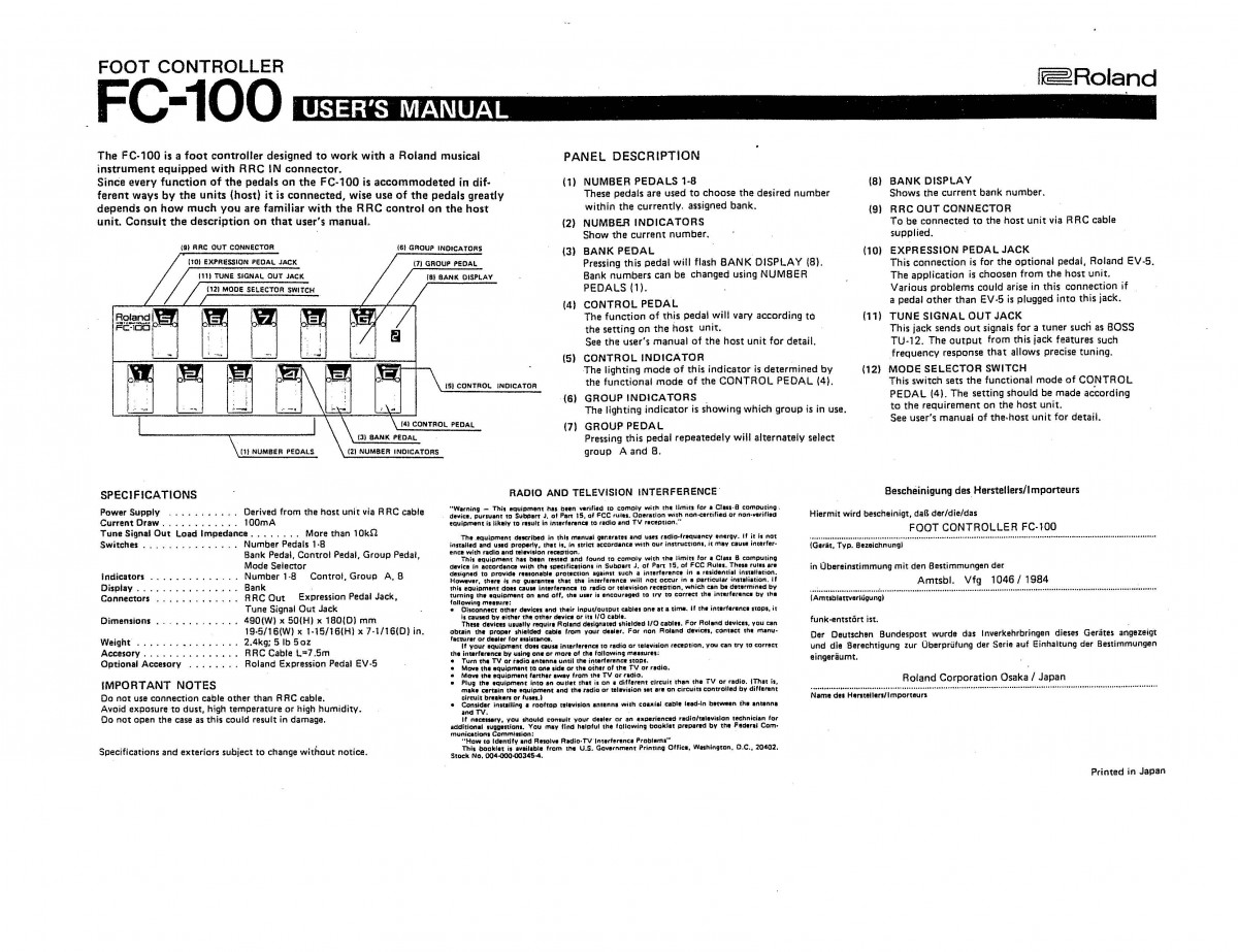ROLAND FC-100 Foot Controller