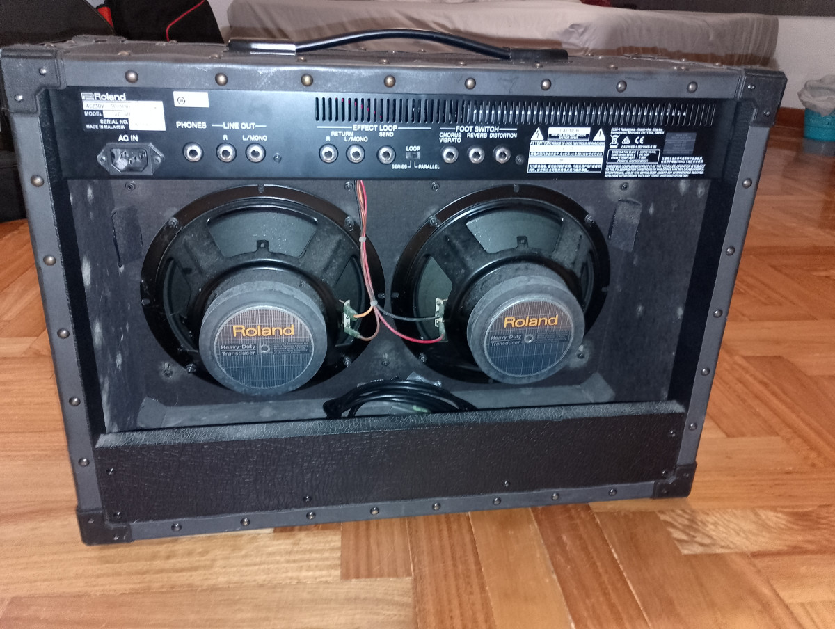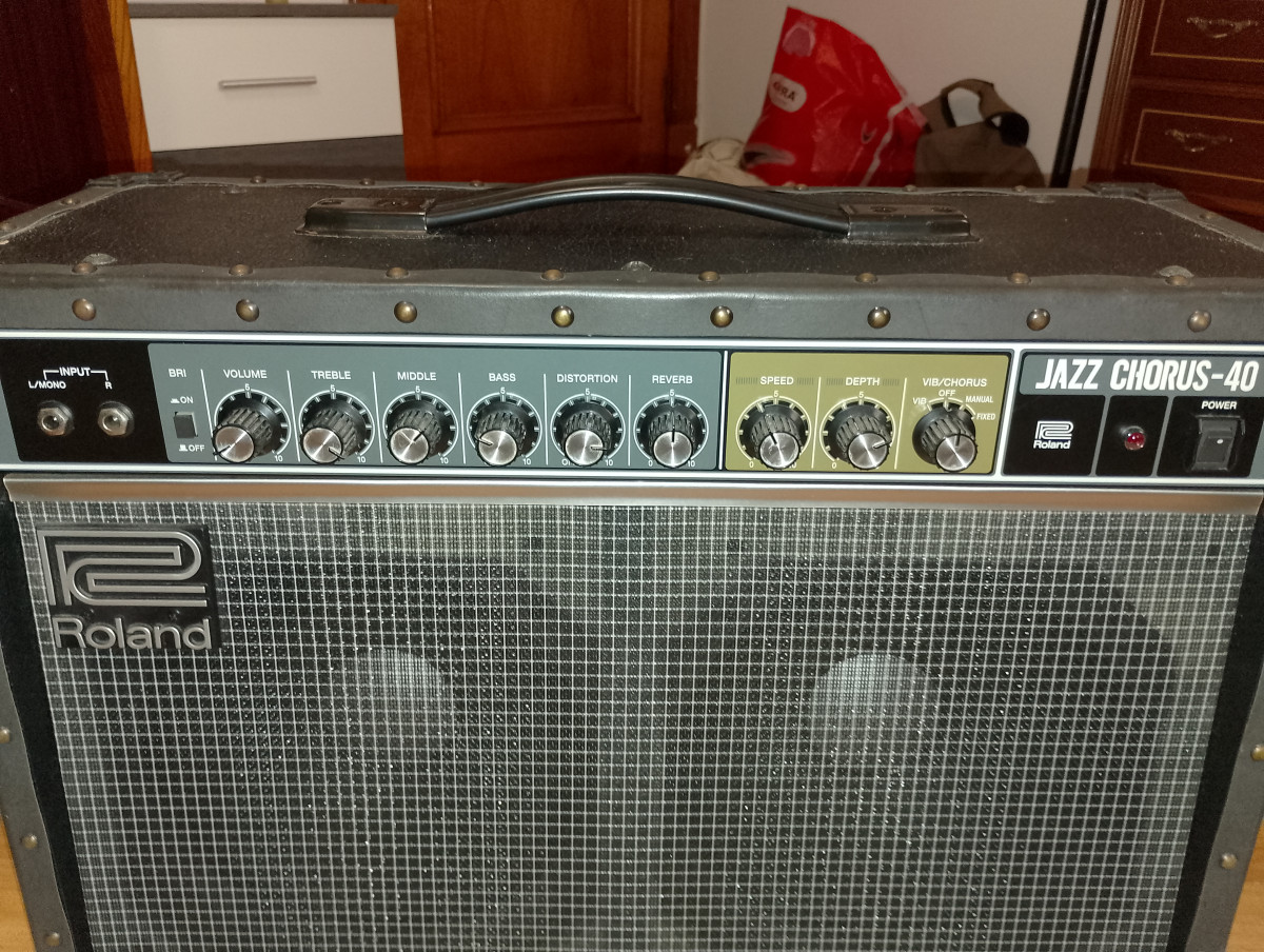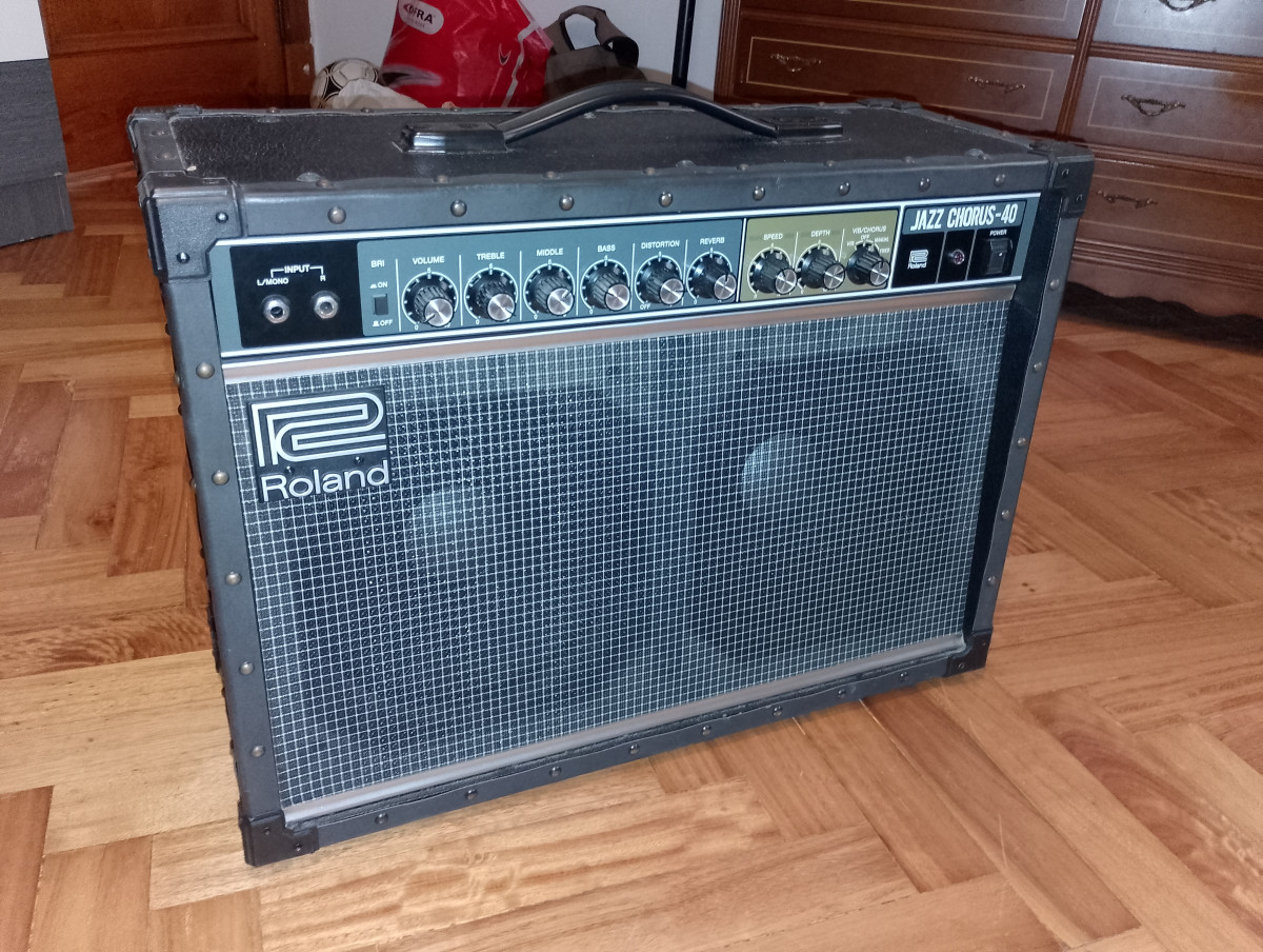Amplificador de guitarra Roland JC-40, es el icono ampli de roland pero con unos vatios que no te quitará la pintura de la pared. Hice bolos con el amplis entonces alguna marca de uso tiene, pero es resistente como un tanque. Se puede probar en Vigo sin problemas. No puedo hacer envíos ya que no tengo manera de mandarlo sin que esté 100% seguro de que te llegue bien. Disculpen las molestias.