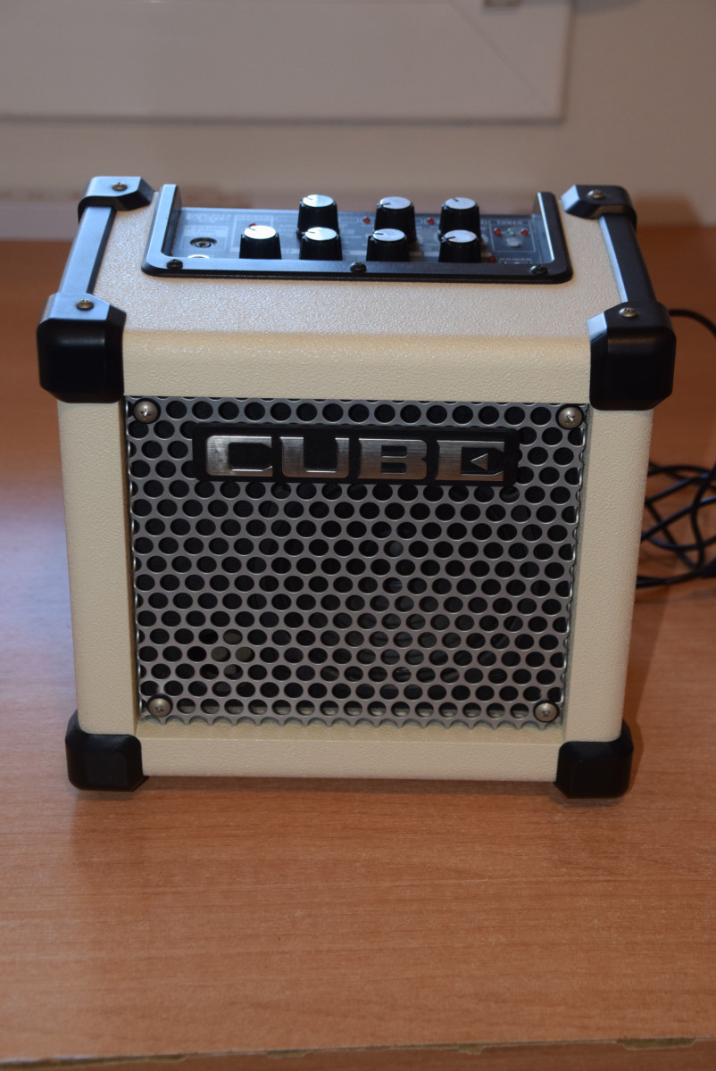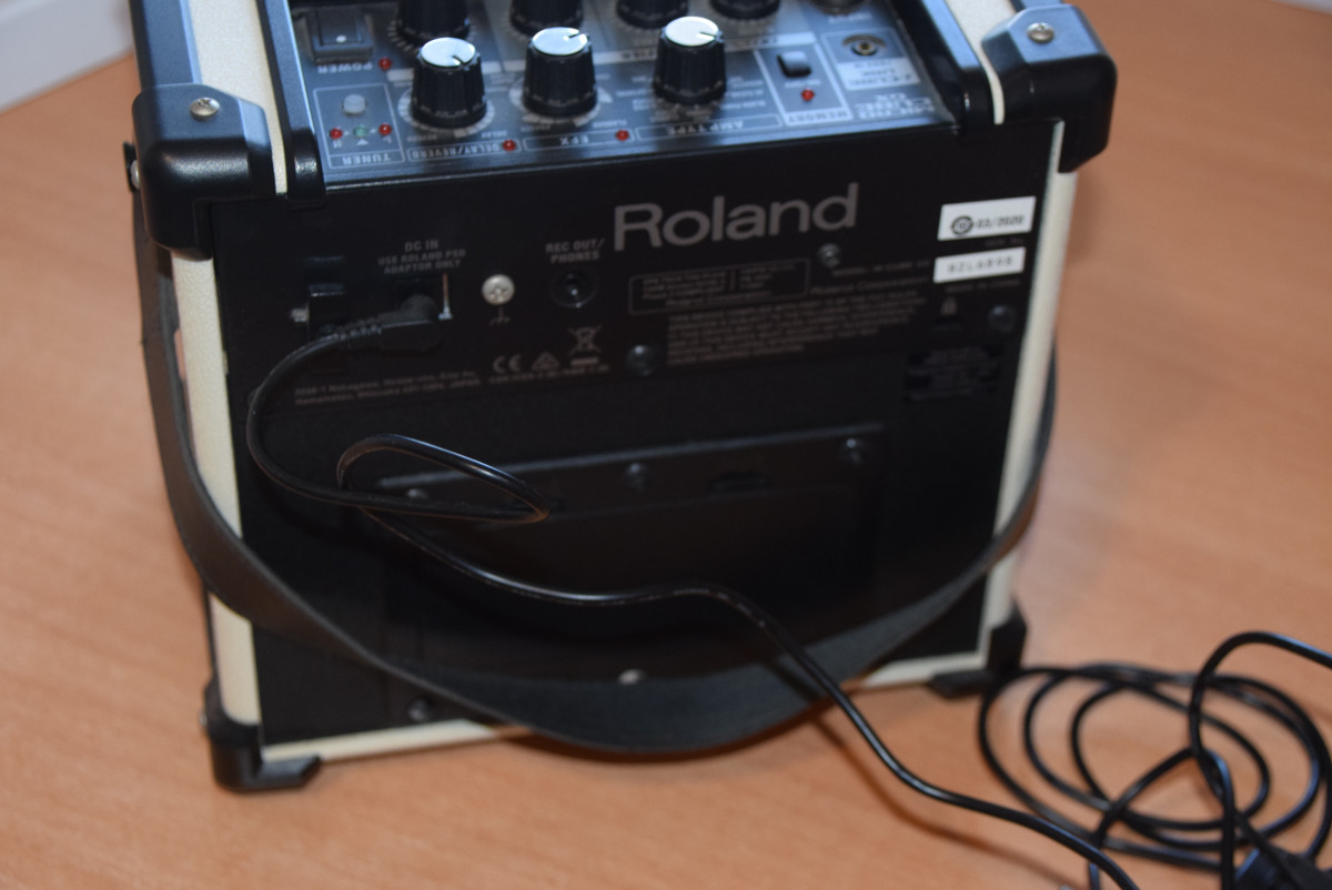 Vendo amplificador portátil Roland Micro Cube GX. Blanco. Puede funcionar con pilas (6 pilas AA) o con alimentador (incluido).