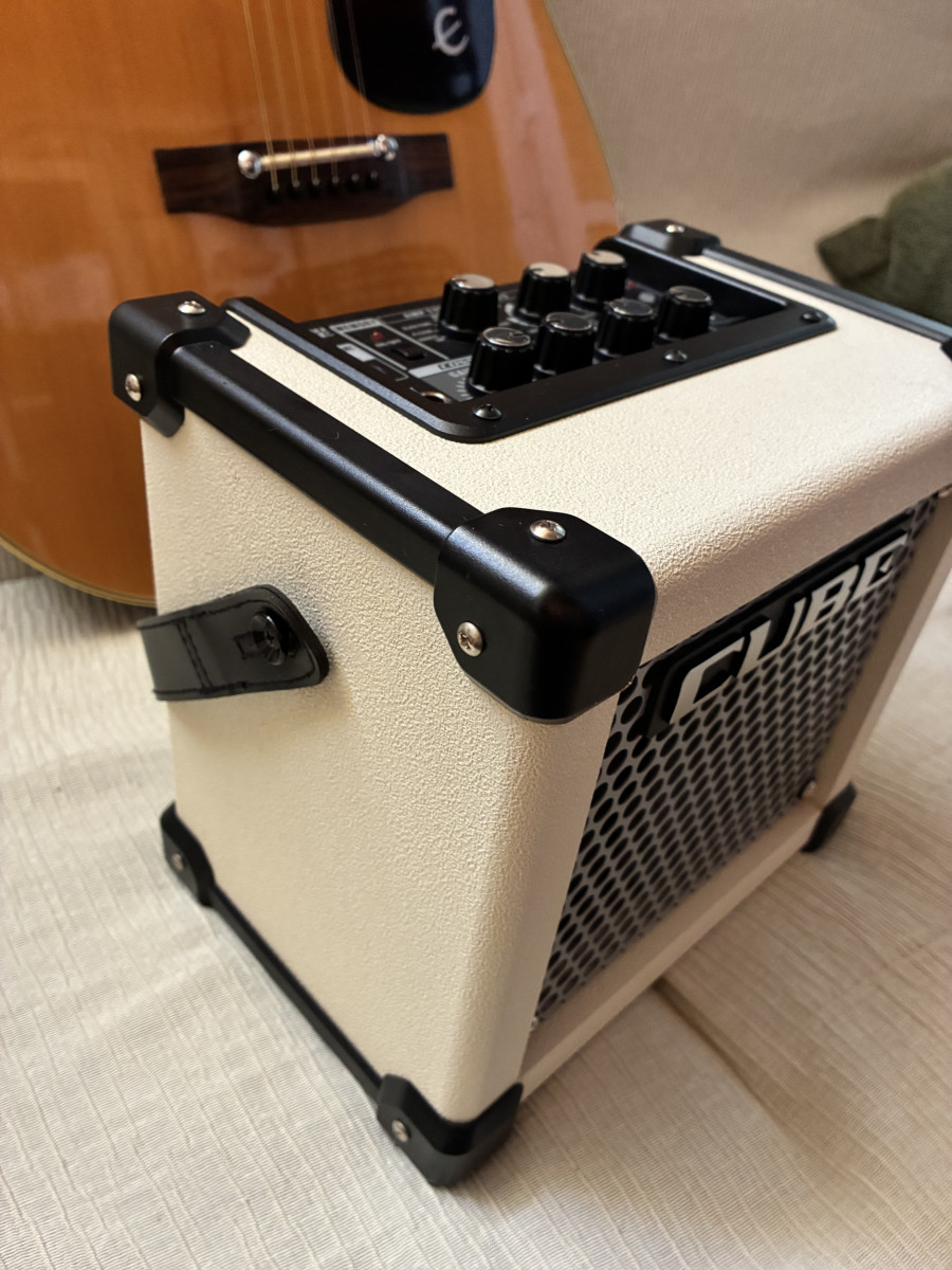 Como nuevo. No sacado de casa. Calidad Roland. Con manual de uso. Amplificador más que potente para uso en casa. Funciona a pilas y con adaptador de corriente incluido.