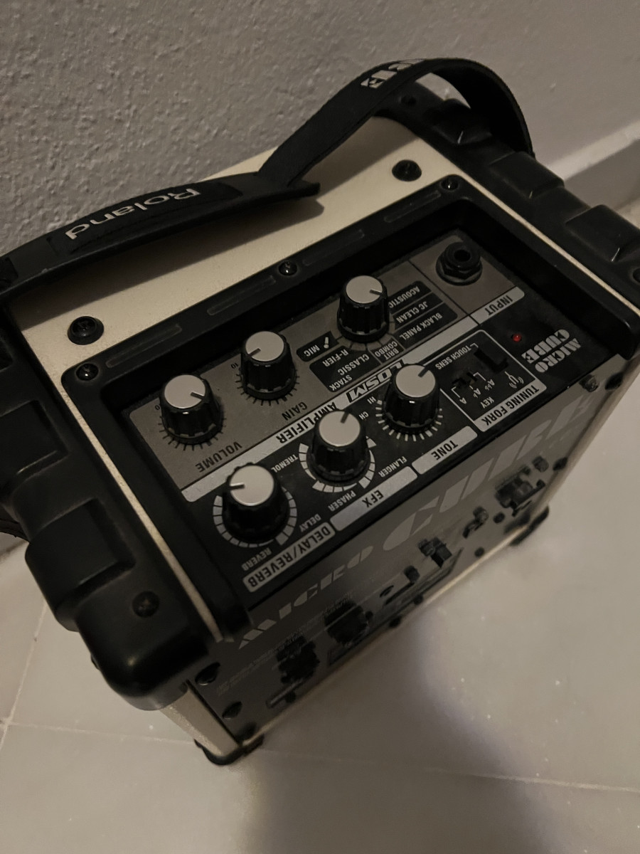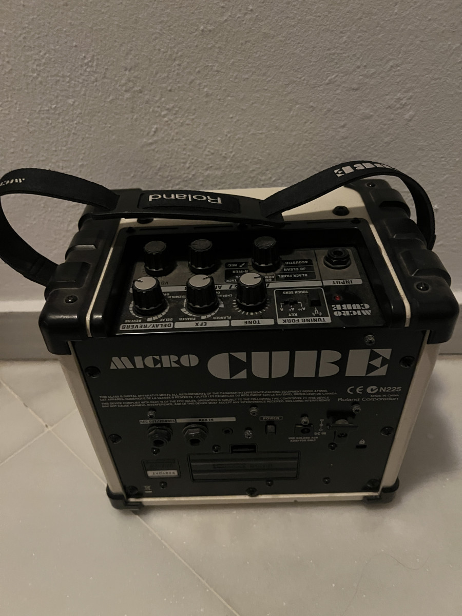 Amplificador Roland Micro Cube en color Blanco. No le funciona el botón de gain cuando he ido a probarlo, seguramente sea una tontería, de ahí el precio. Por lo demás, esta en muy buen estado, se uso muy poco.