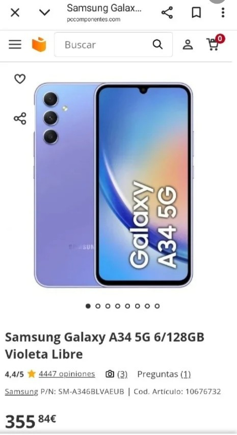 Samsung a34 5g , 6g ram, 128gb pantalla amoled, batería 5000 mAh, pantalla 6.6", procesador MediaTek Dimensity 1080 8 núcleos, android 13, Resolución pantallaFHD+ (2340x1080).