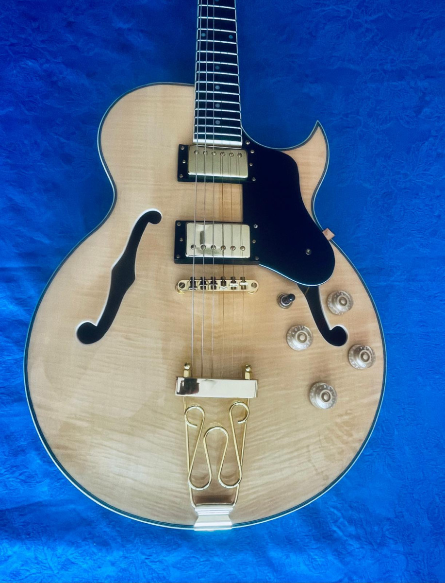 La guitarra semiacústica San Diego es un instrumento de apariencia vintage con un timbre auténtico. Con un acabado Natural de alta calidad, un cuerpo de arce hollowbody, un puente trapezoidal y dos pastillas humbucker con cubierta dorada. Por si fuera poco, es muy fácil de tocar gracias a su mástil encolado de arce de alta calidad.