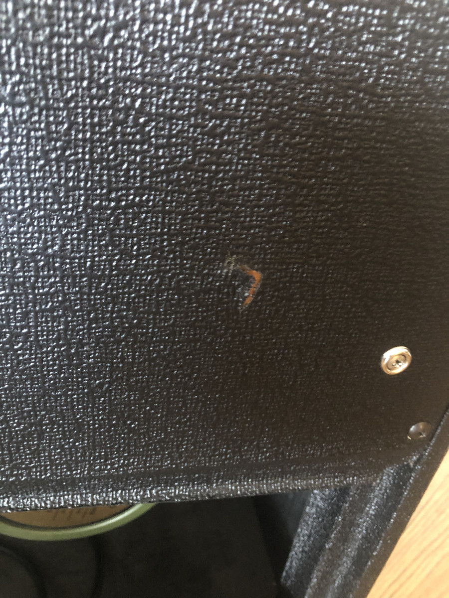Tiene un ding en el tólex en la parte trasera, ver fotos! Y el tolex algo despegado y q a mi no me ha molestado porque le da “rollo” pero nada q un buen pegamento de tapicero no pueda arreglar… y por eso el precio de venta.