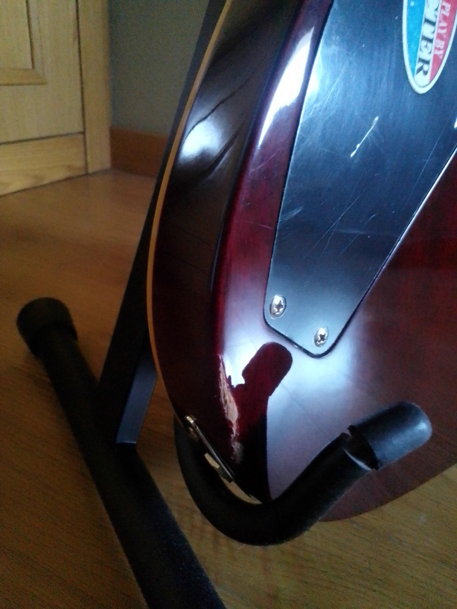Ha tenido muy poco uso, únicamente tiene una marca de pintura saltada en la parte trasera cerca del conector como se ve en la foto.