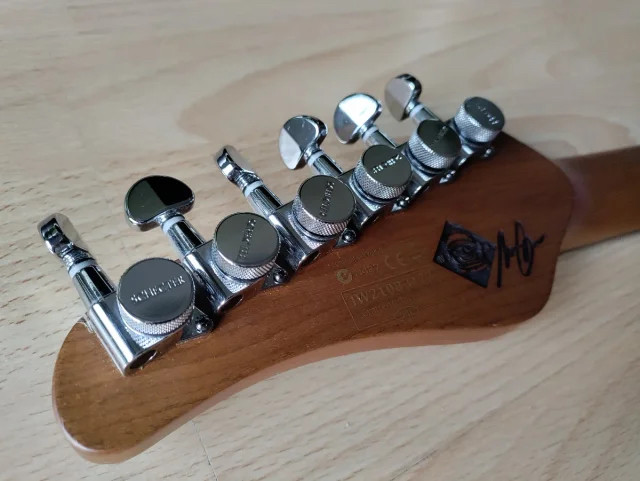 Una guitarra ligera y comodísima, con sonidazo a Stratocaster, perfilada por el gusto de Nick Johnston. Hay mil vídeos y reviews en Youtube.