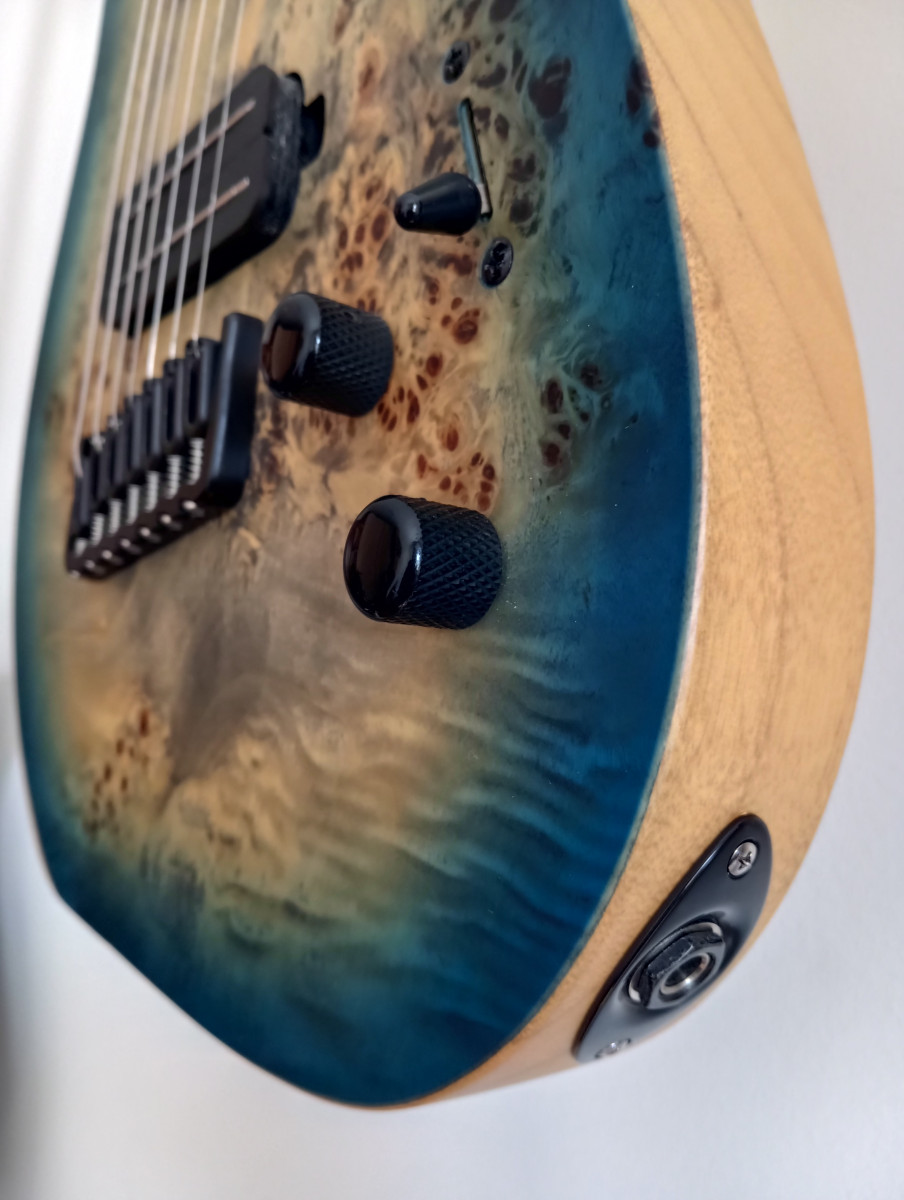 - Mastil multicapa de arce/nogal con varillas de refuerzo de fibra de carbono