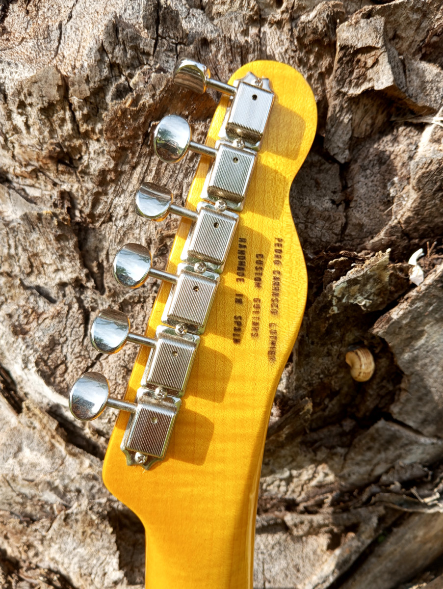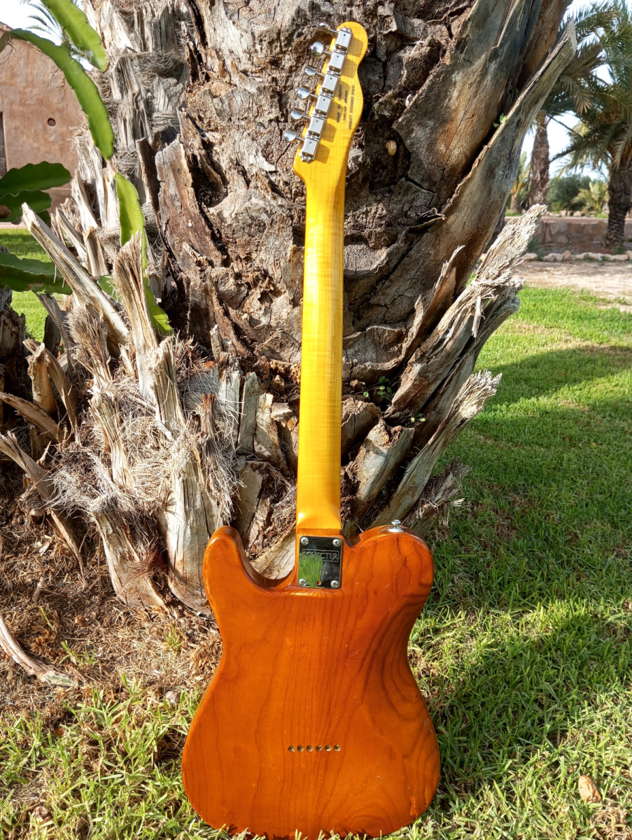 Guitarra creada a partir de un cuerpo original Schecter telecaster de los 80s, mástil construido por luthier reconocido en Elche (Alicante), ébano, arce rizado, pala invertida a petición mía,. Tengo fotos de todo el proceso de construcción, pastillas y electrónica Seymour duncan seleccionadas,..suena espectacular!!