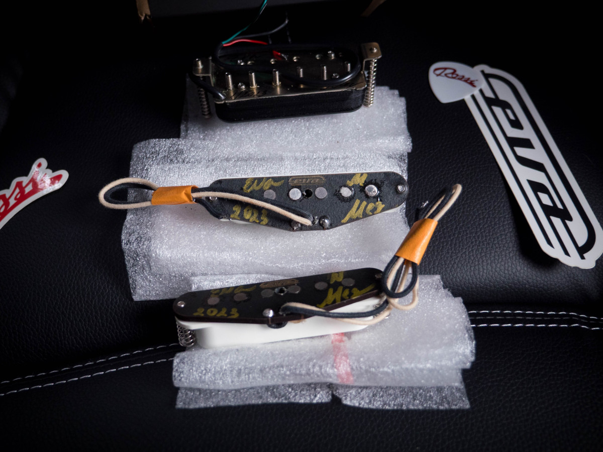 Uno de ellos es, quizá, el de sonido más dulce, bonito y redondo que haya probado... No es otro que el set HSS de Eva Pickups (fabricado por David Rossi) compuesto por 2 single coils modelo "Boutique" y una doble (F-Spaced) modelo "Autumn 59"