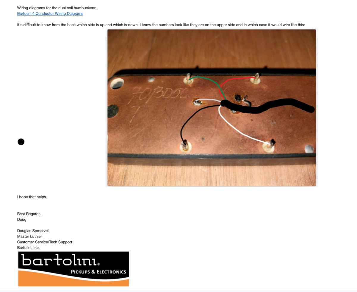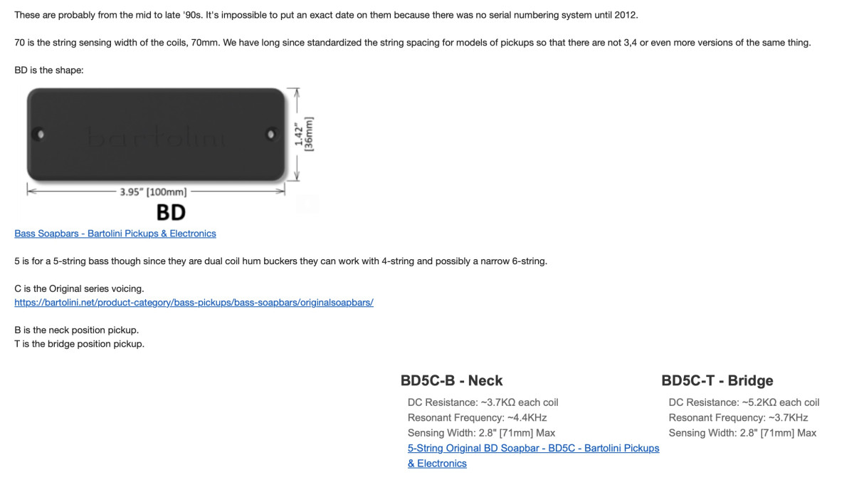Se adjuntan imágenes del servicio de atención al cliente de Bartolini, indicando que son originales y anteriores al año 2012, ya que carecen de numeración seriada. En esa imagen, se indica cuál es el cableado de la pastilla (cuello o puente, es la misma).